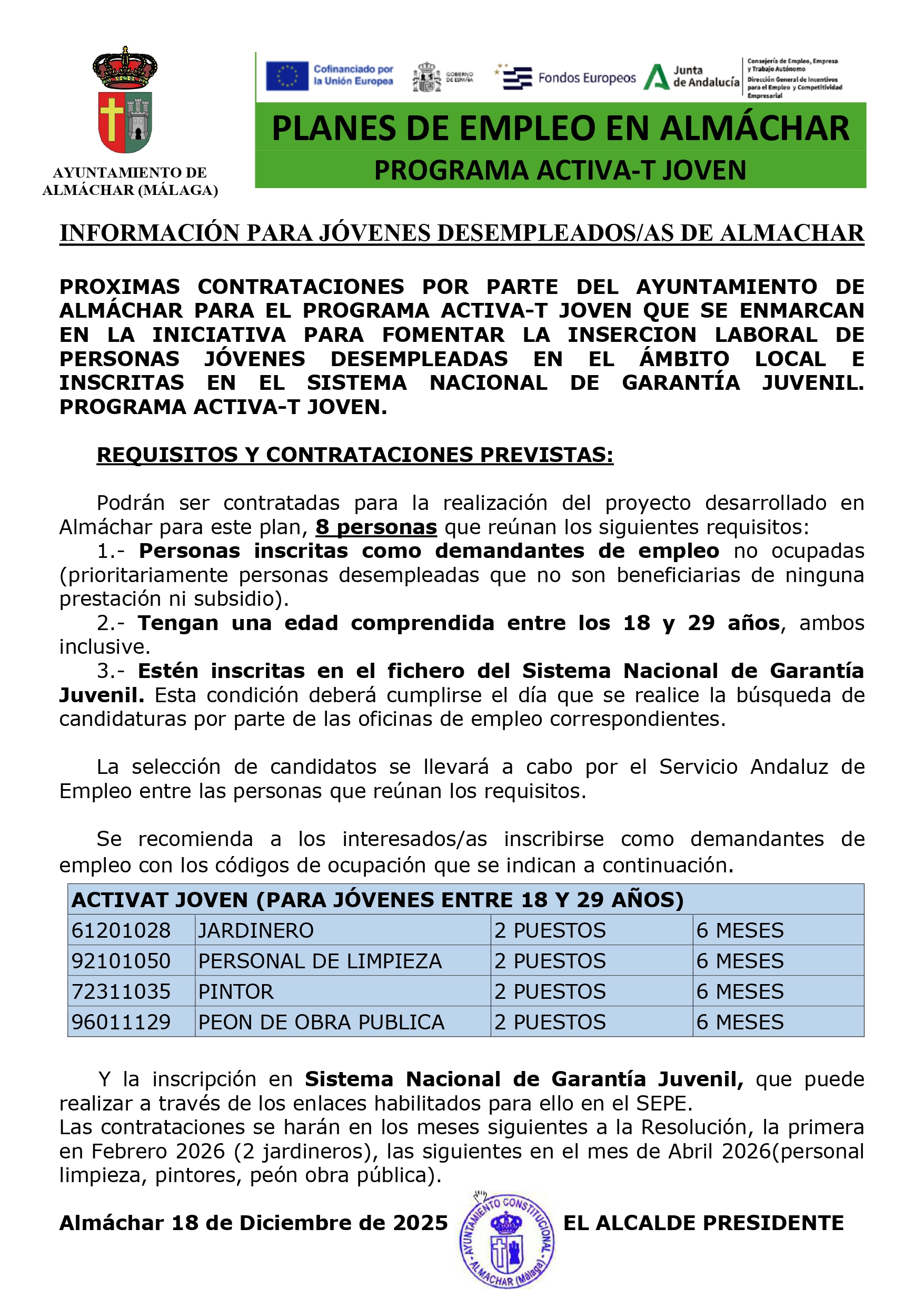 #Almáchar #EmpleoJoven #ActivaTJoven #GarantíaJuvenil #AyuntamientoDeAlmáchar #PlanesDeEmpleo