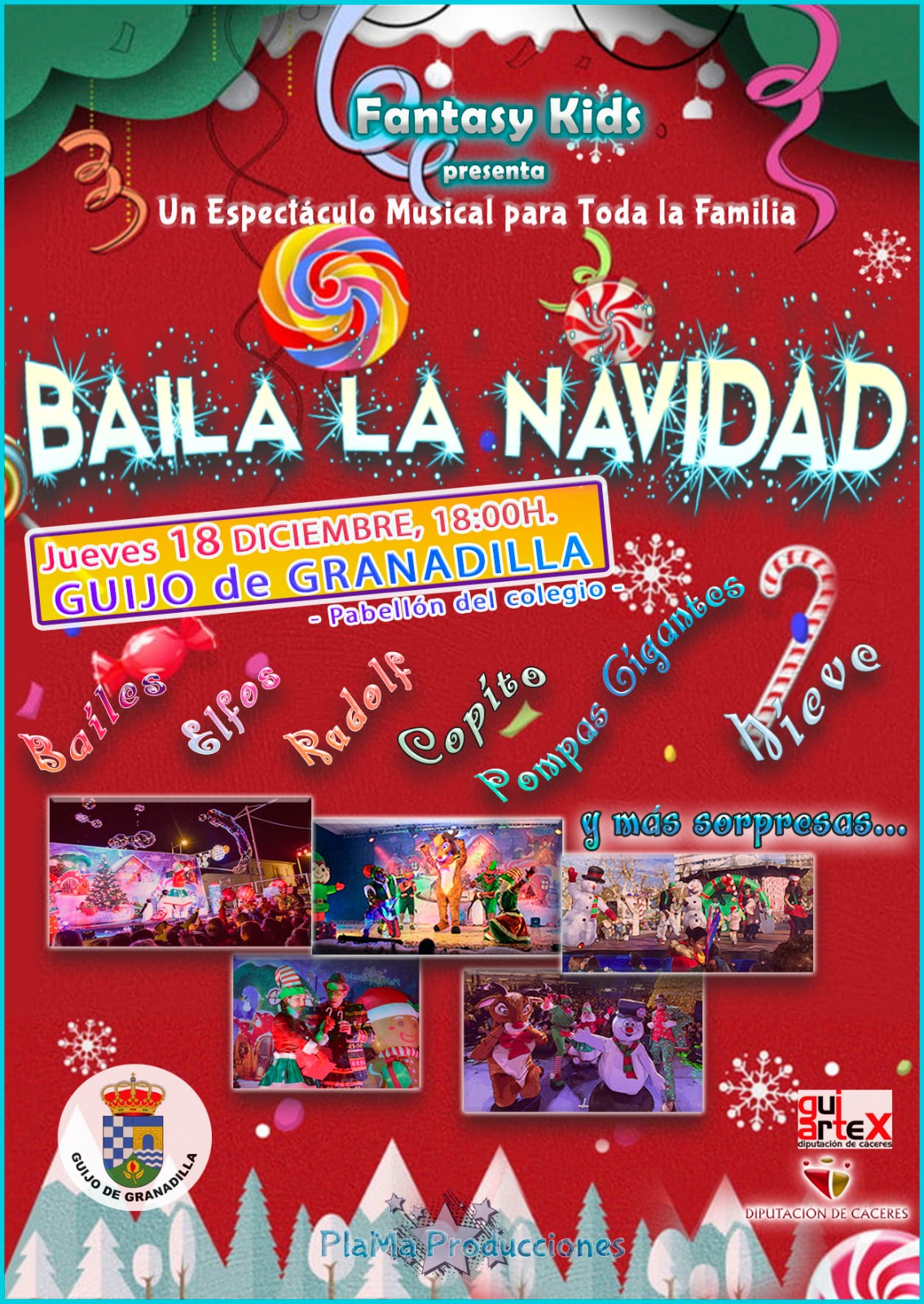 👉👉Esta tarde a las 18:00 h en el pabellón del colegio, espectáculo para toda la familia "BAILA LA NAVIDAD" 🎄🎄🎄💥Navidad en GUIJO DE GRANADILLA 💥