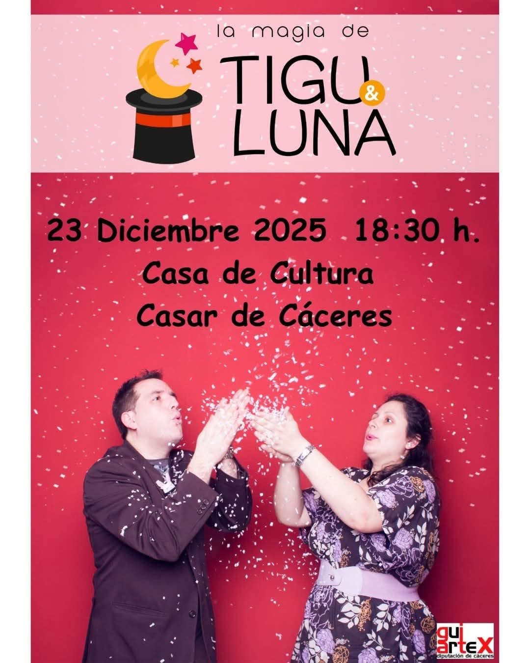 El 23 de diciembre de 2025 llegan a Casar de Cáceres TIGU & LUNA con un espectáculo súper divertido, lleno de trucos, risas y fantasía.