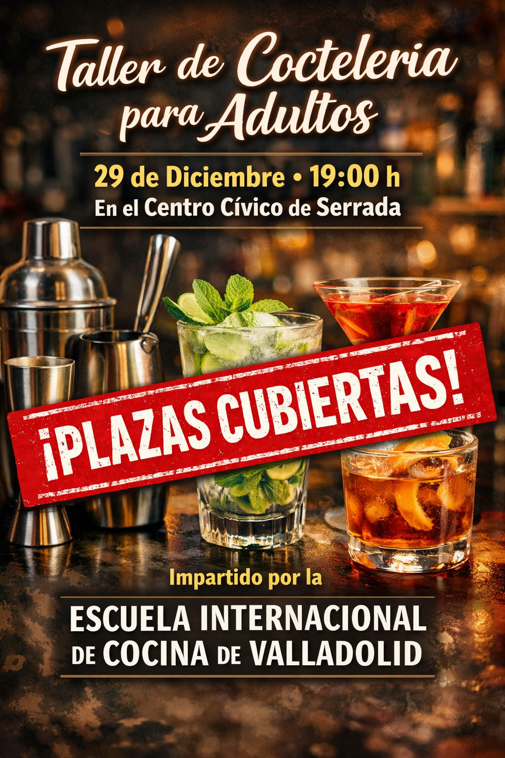 Las plazas para el taller de coctelería ya se están cubiertas, disculpen las molestias.