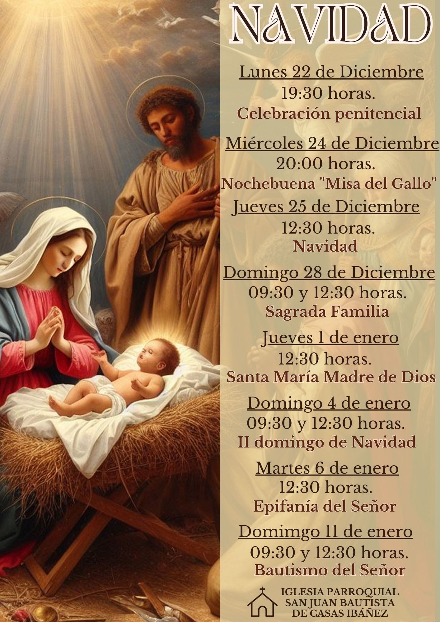Desde la Parroquia se informa de los horarios de las diferentes celebraciones navideñas.
