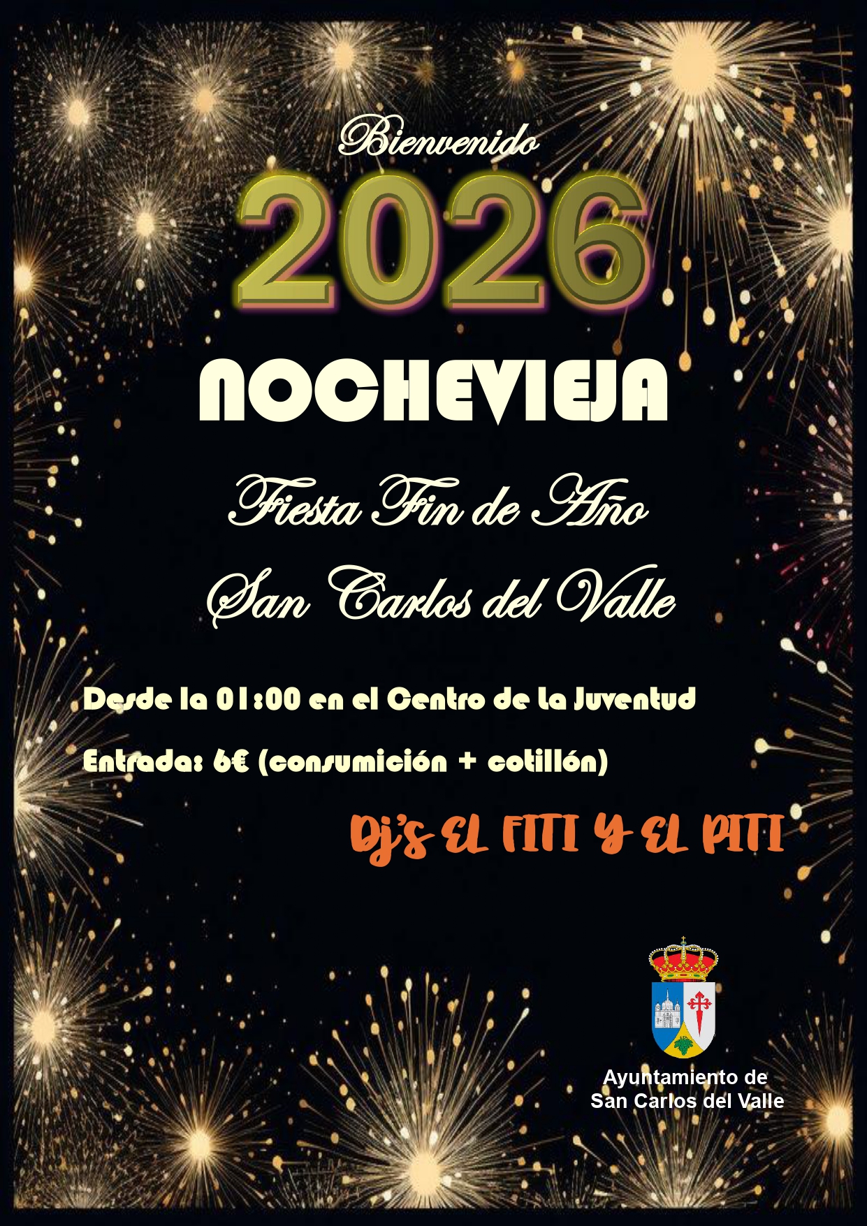 El Ayuntamiento organiza la Fiesta Fin de Año.A partir de las 1:00h en el Centro de la Juventud.