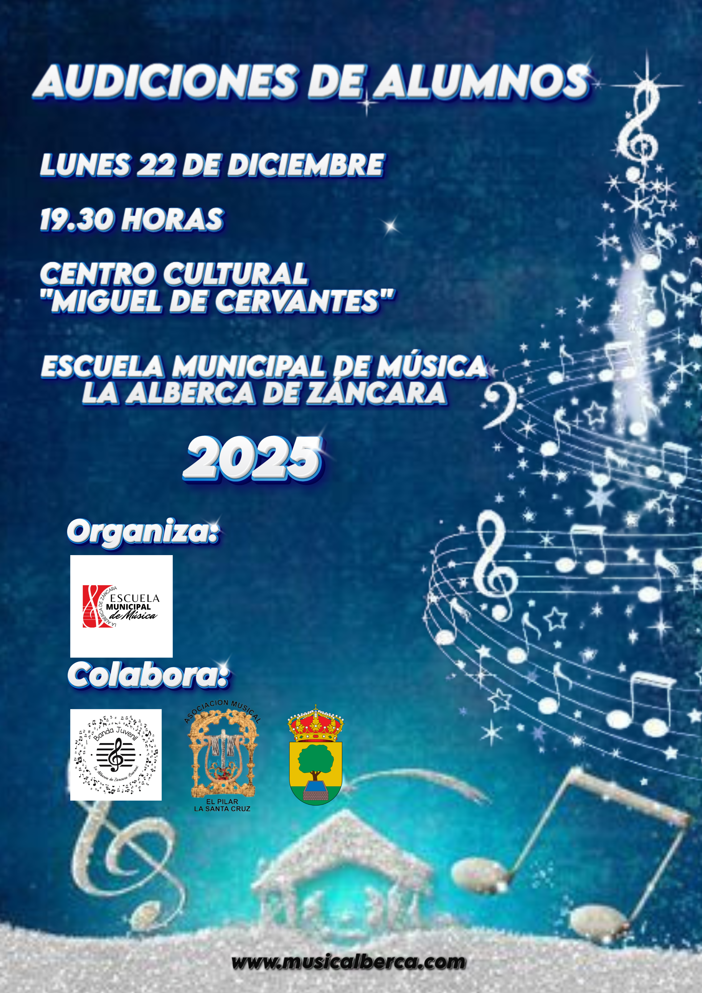 Hoy a las 19:30 h te esperamos en la Audición de la Escuela de Música Municipal, donde los alumnos y alumnas nos demostrarán todo lo que han aprendido con mucha ilusión, talento y ganas de pasarlo bien 🎼😊