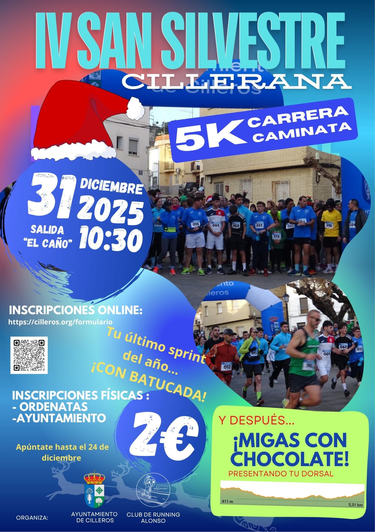 SE INFORMA QUE MAÑANA MIÉRCOLES DÍA 24 DE DICIEMBRE, ES EL ÚLTIMO DÍA DE PLAZO, PARA INSCRIBIRSE EN LA IV SAN SILVESTRE CILLERANA.