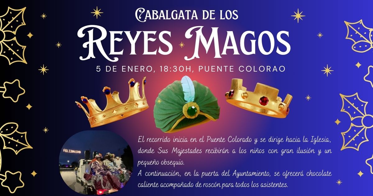 Sus Majestades los Reyes Magos llegarán llenos de ilusión para recorrer el camino desde el Puente Colorado hasta la Iglesia, donde recibirán con cariño a todos los niños y les entregarán un pequeño obsequio 🎁👑.