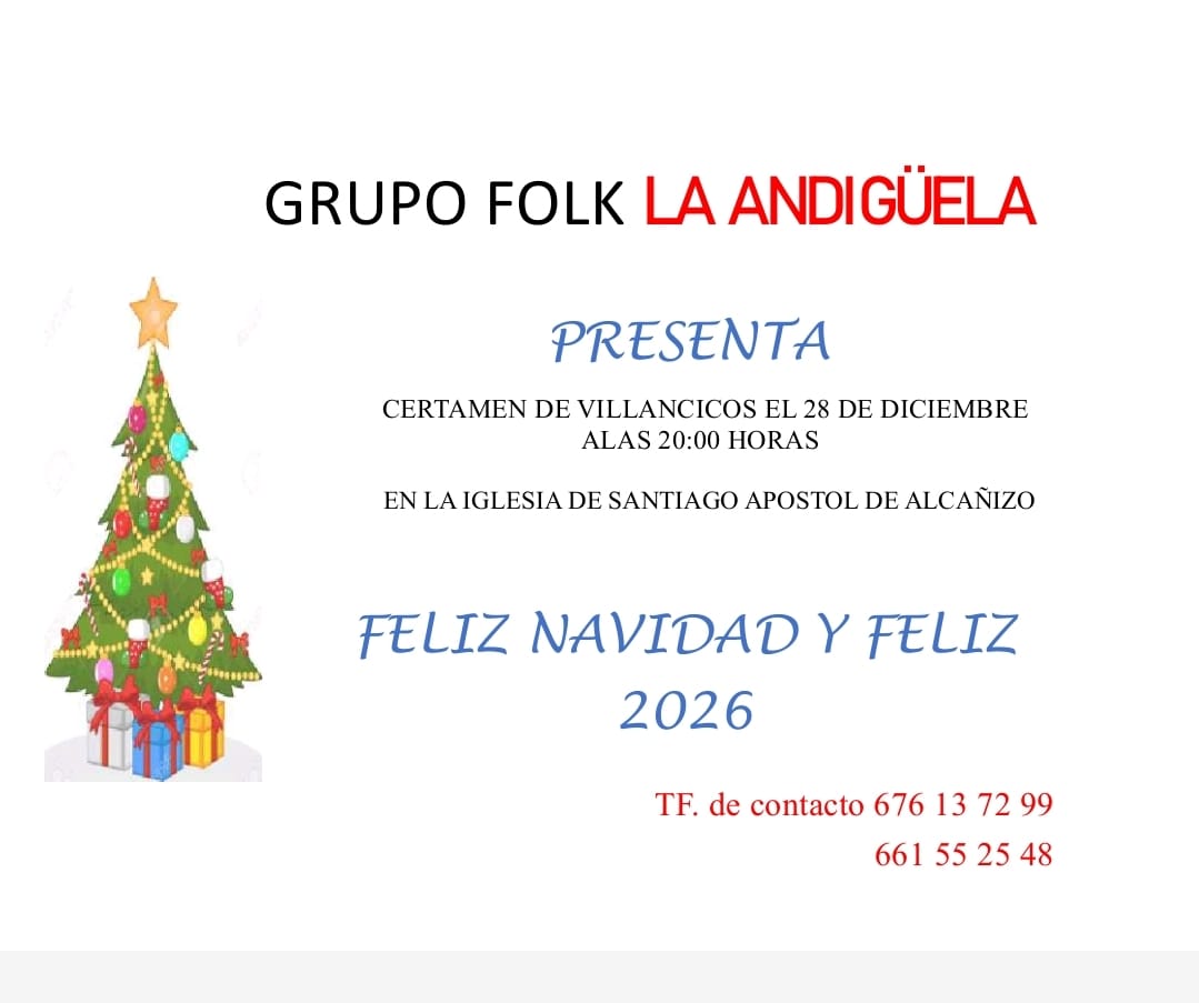 EL GRUPO FOLK "LA ANDIGUELA" PRESENTA EL CERTAMEN DE VILLANCICOS 2025 EL 28 DE DICIEMBRE A LAS 20:00 HORAS