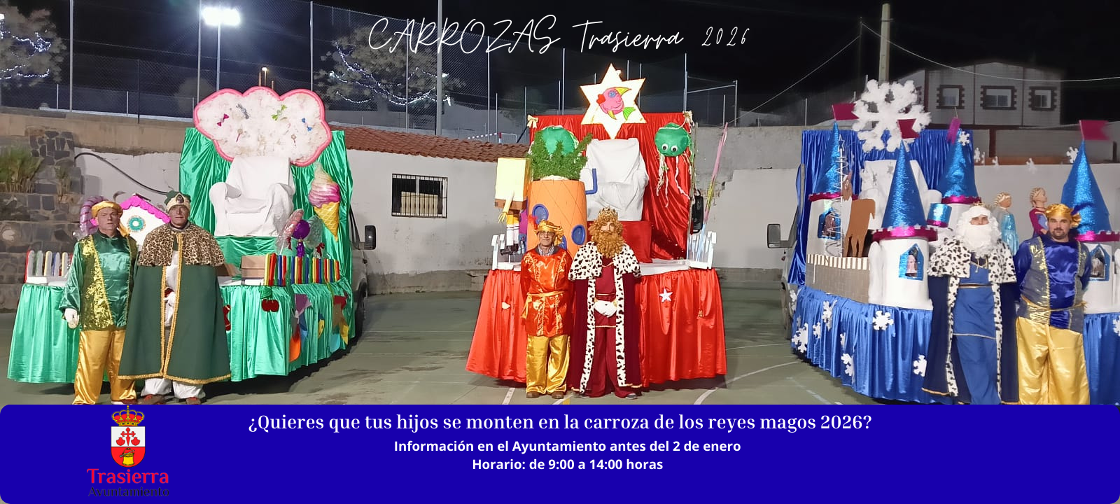 ¿Quieres que tus hijos se monten en la carroza de los reyes magos 2026?Infórmate en el Ayuntamiento antes del día 2 de enero en horario de 9:00 14:00 horas.