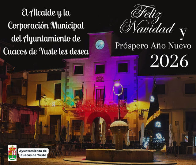 Desde la Alcaldía de Cuacos de Yuste y en nombre de toda la Corporación Municipal, les transmitimos nuestros mejores deseos con motivo de las fiestas navideñas y queremos reconocer la gran labor del personal del Ayuntamiento.
