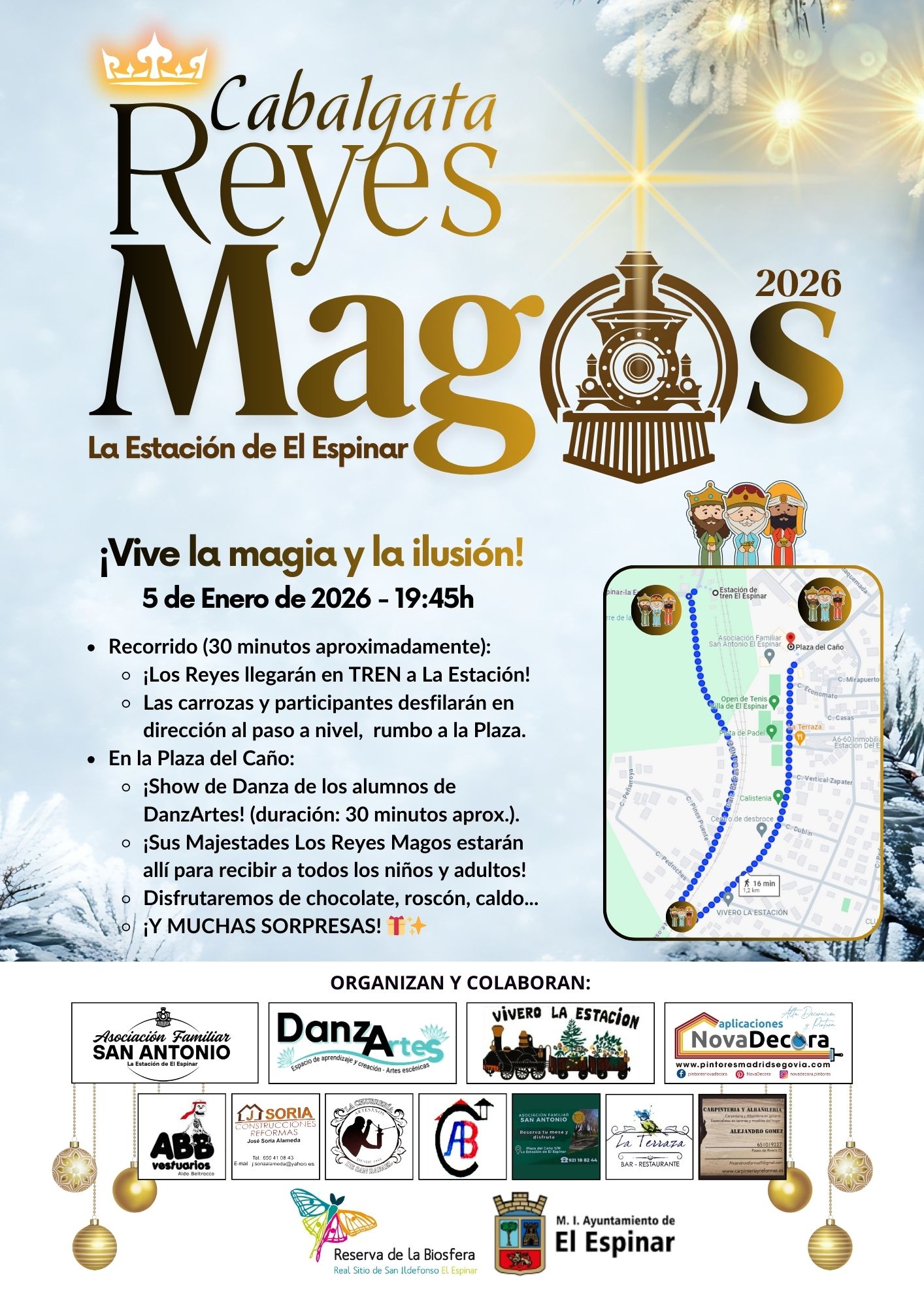 Debido al cambio de horario de los trenes que realizan parada en La Estación de El Espinar, los organizadores de la Cabalgata de La Estación informan a los niños y niñas del municipio de que Sus Majestades los Reyes Magos de Oriente retrasarán ligeramente su llegada.