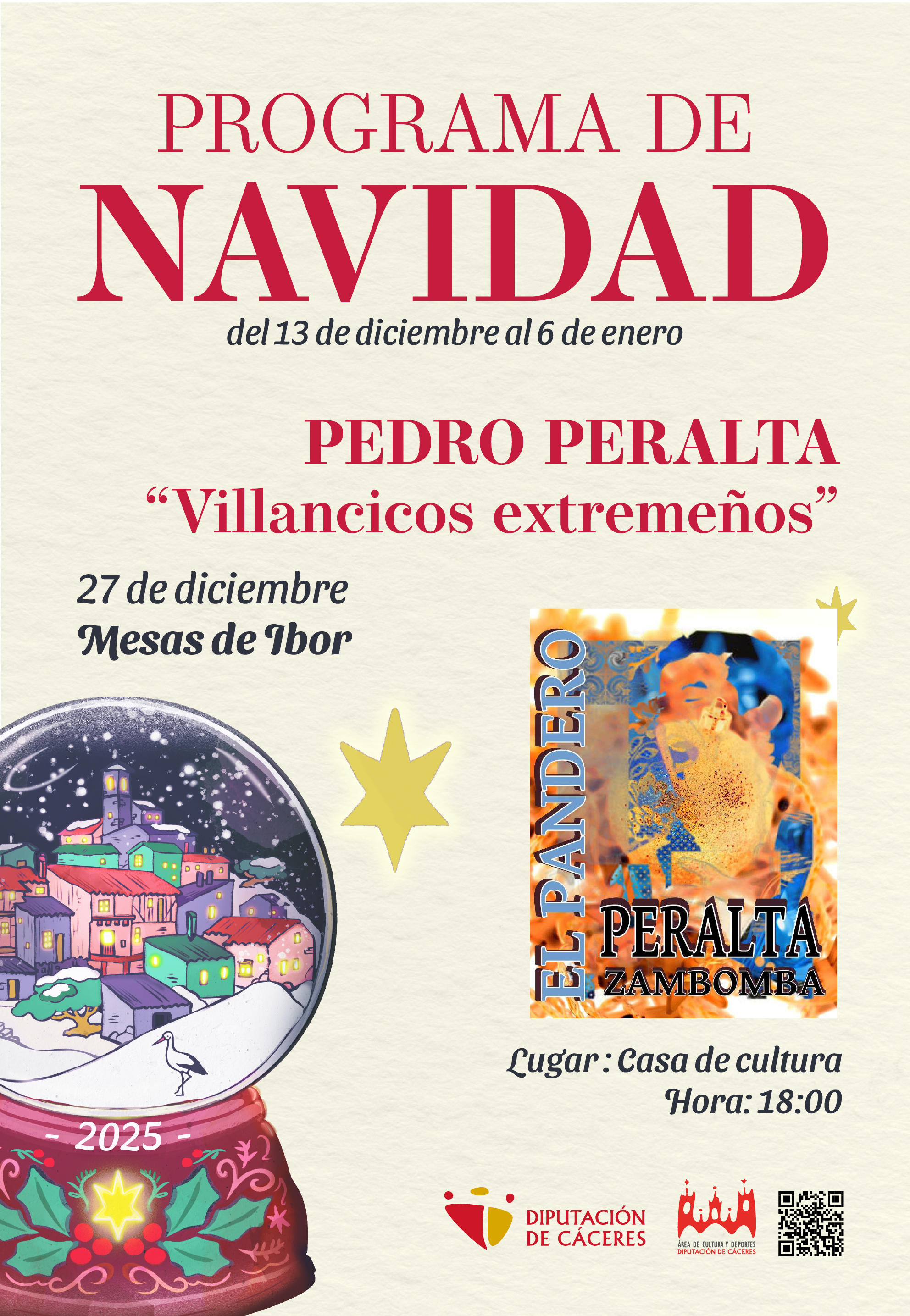 Actuación de "PEDRO PERALTA, Villancicos Extremeños " el día 27 de diciembre de 2025 en la casa de la cultura a las 18:00