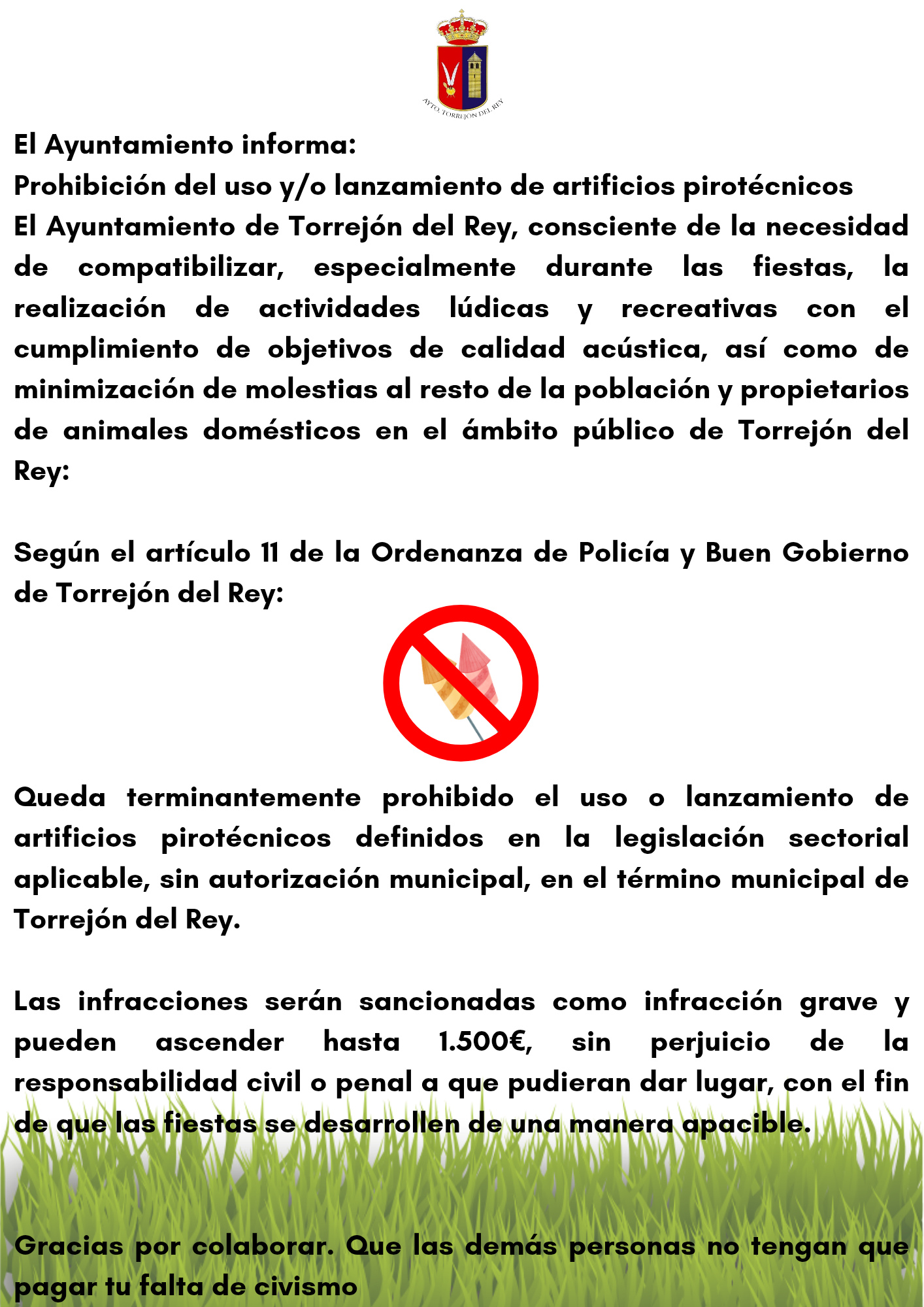 #AvisoMunicipal #Convivencia #PirotecniaCero #RespetoAnimal #AyuntamientodeTorrejóndelRey
