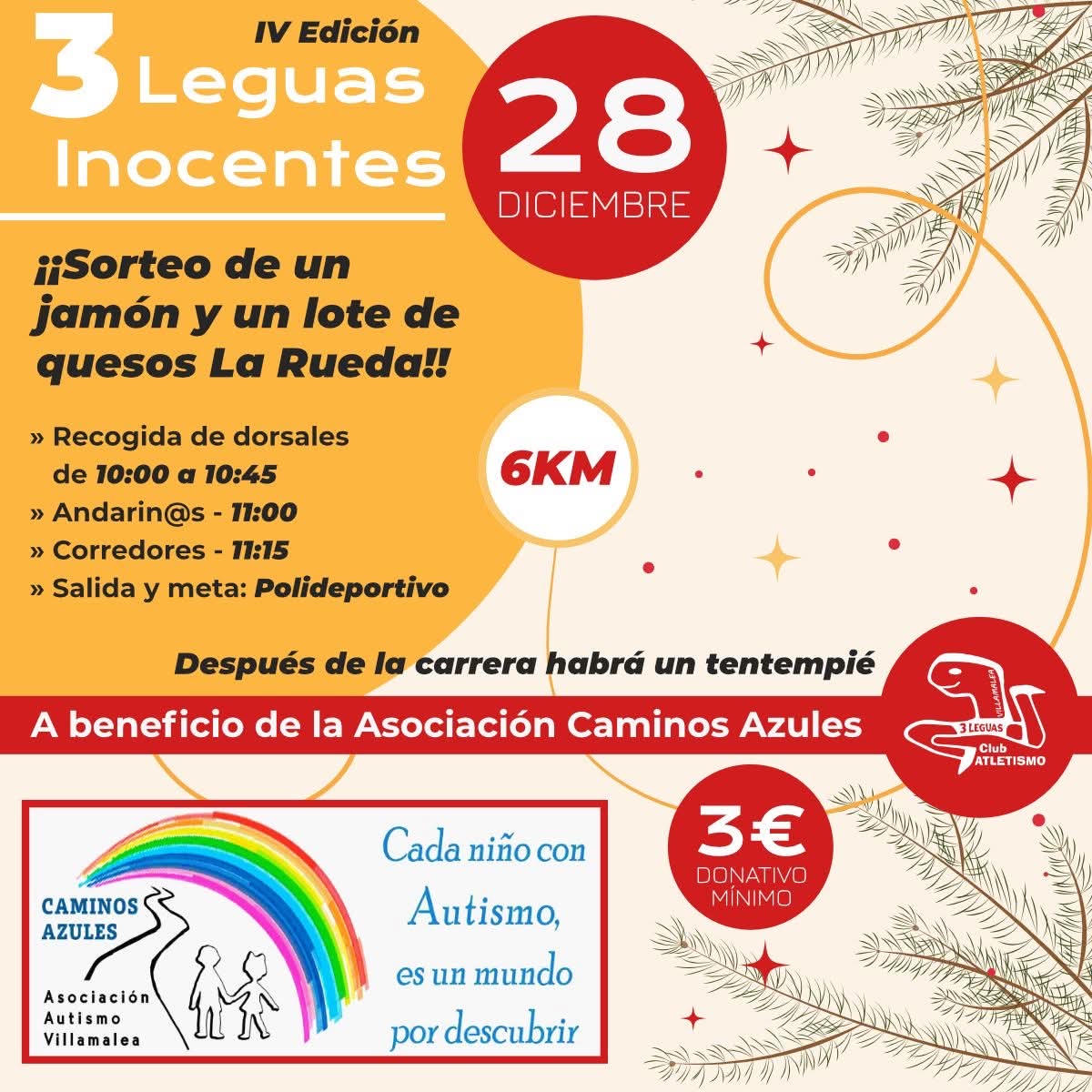 Buenos días equipo 🌞 Mañana celebramos nuestra IV carrera benéfica "3 Leguas Inocentes" éste año a beneficio de la asociación Caminos azules 💙Os esperamos a todos a participar en una buena causa.
