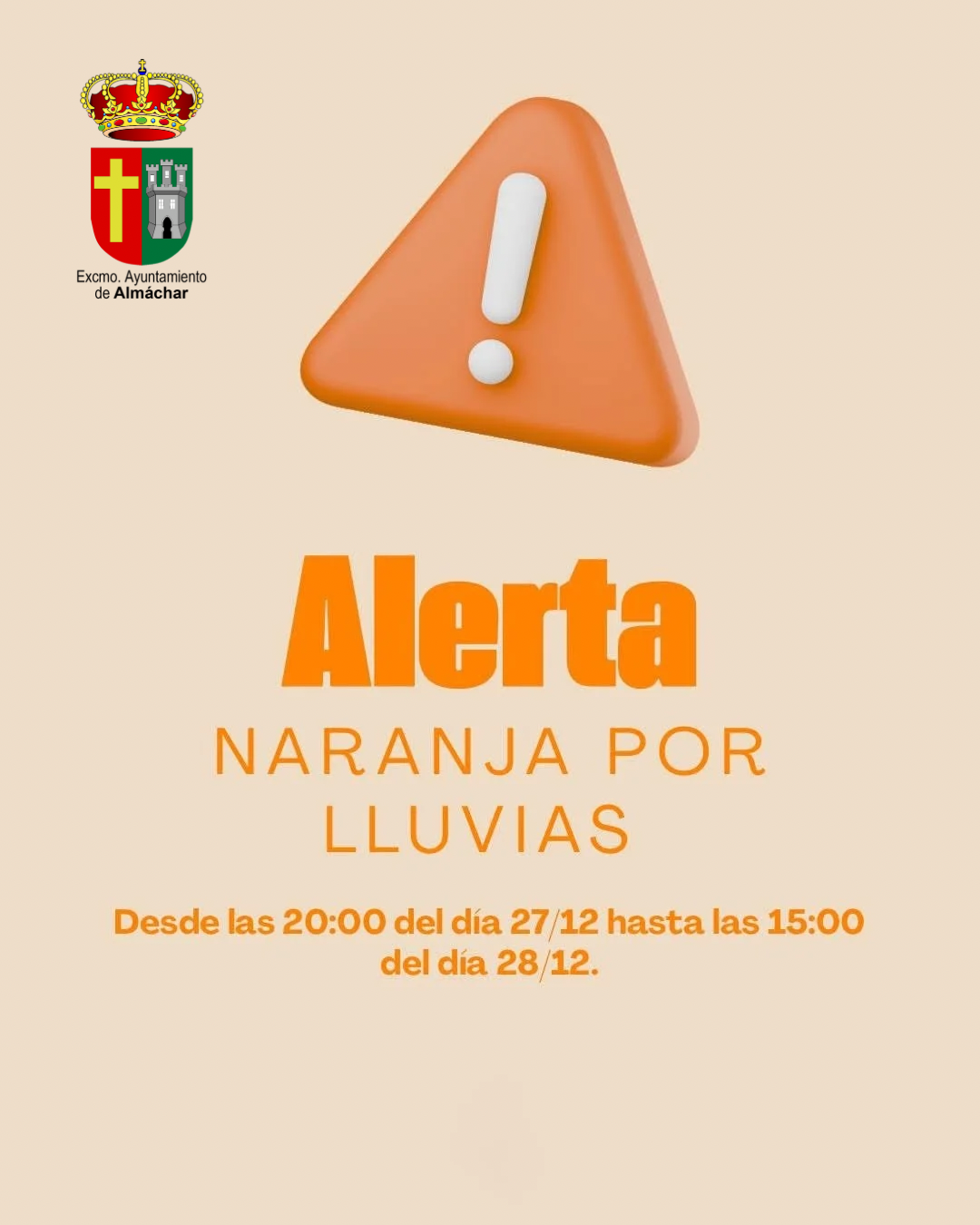🔶 AVISO NARANJA por lluvias