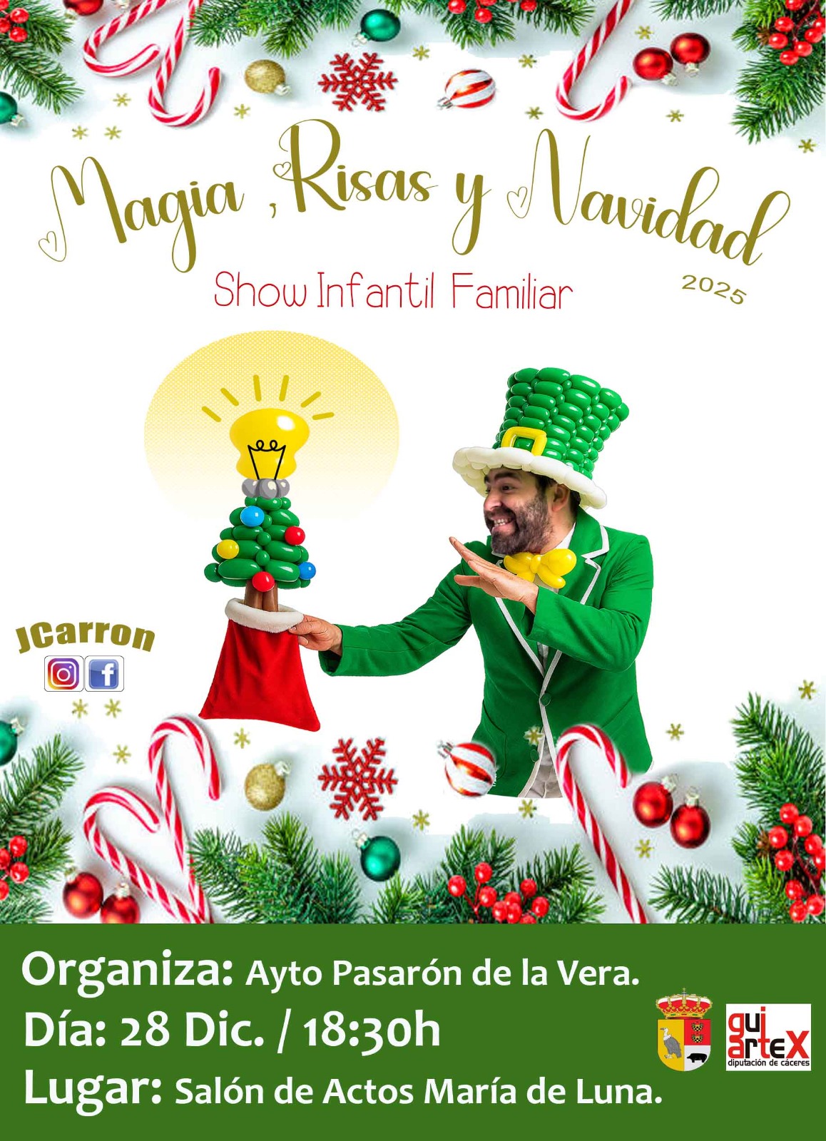 Esta tarde a las 18:30h tendrá lugar un espectáculo infantil familiar a cargo del humorista Javier Carrón.Os esperamos a tod@s en el salón de actos municipal Maria de Luna