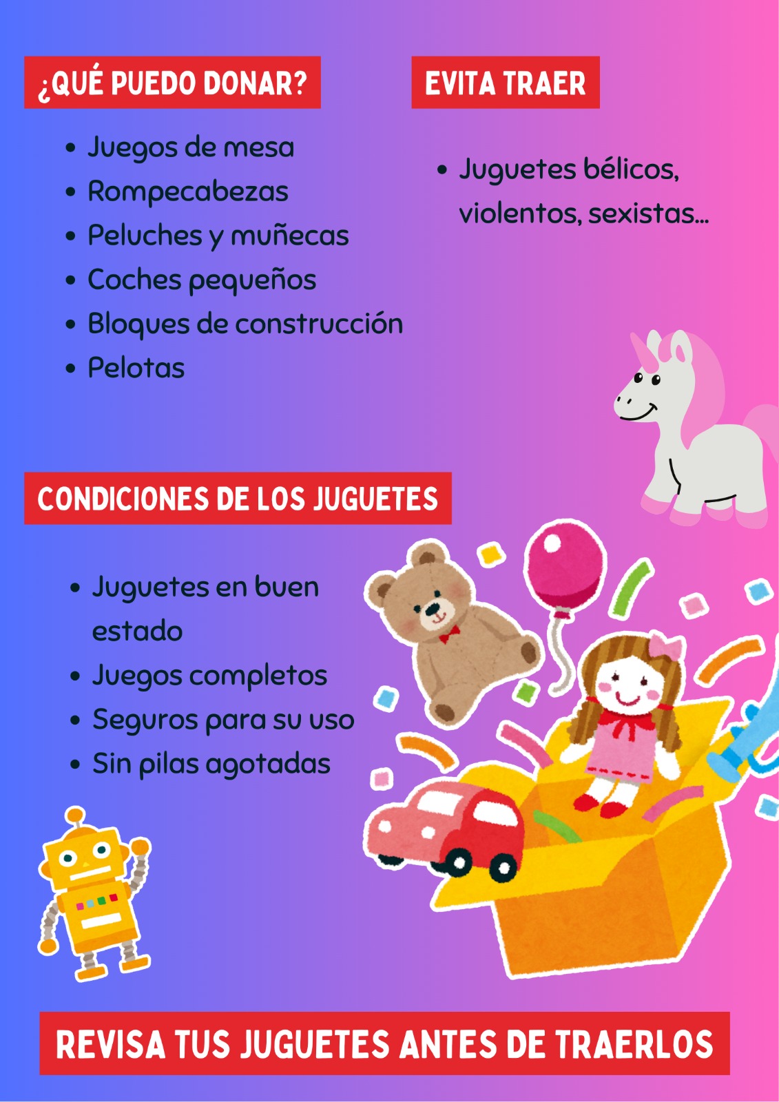 Además, durante toda la jornada se realizará una recogida solidaria de juguetes que no se utilicen en buen estado, que serán donados a familias y menores que los necesiten.