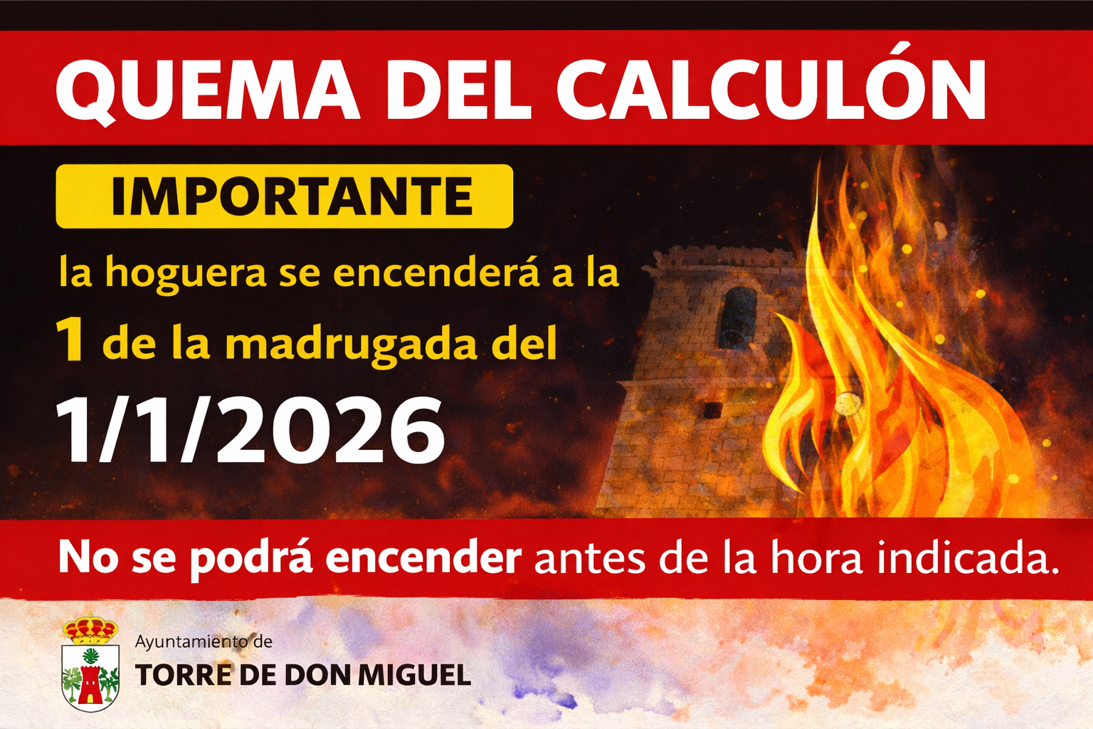 Recordamos que El Calculón no podrá encenderse hasta la 1:00 de la madrugada del día 1 de enero de 2026, bajo ningún concepto antes de la hora indicada.