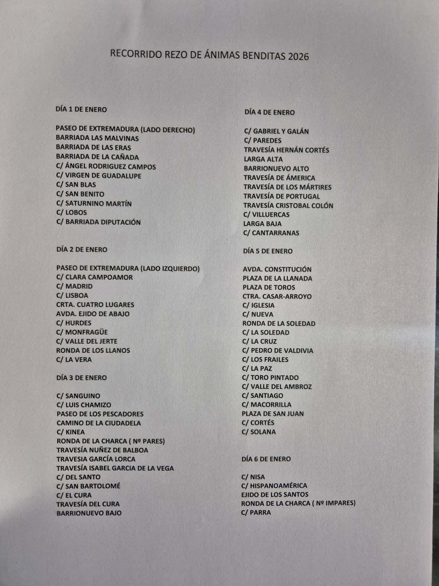 🔔 Como es tradición, del 1 al 6 de enero, se realiza la Ronda de Ánimas por la Cofradía de Ánimas Benditas del Purgatorio de Casar de Cáceres