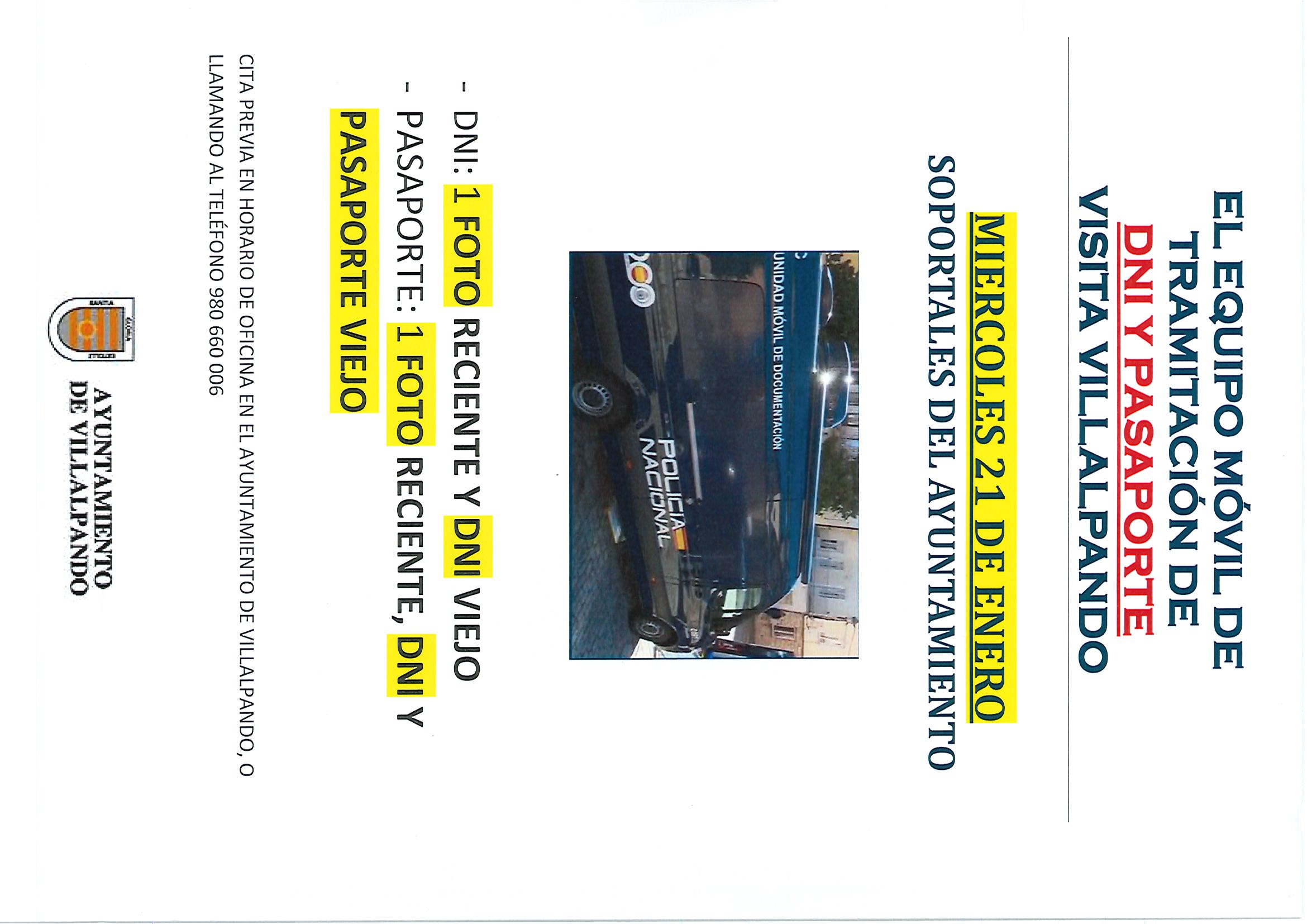 El 21 de enero, la unidad móvil de tramitación del DNI y Pasaporte estará en Villalpando, pide cita en el Ayuntamiento
