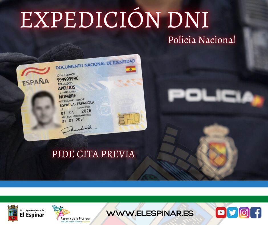 El Ayuntamiento de El Espinar informa de que el Equipo DNI-Móvil de la Comisaría Provincial de Segovia se desplazará a nuestra localidad para la expedición y renovación del Documento Nacional de Identidad (DNI).
