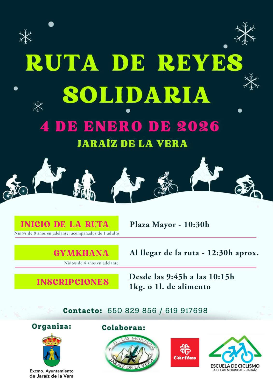 El Ayuntamiento de Jaraíz de la Vera informa que, este domingo 4 de enero, a las 10:30 de la mañana, se celebrará la tradicional Ruta Solidaria Ciclista de Reyes a favor de Cáritas Jaraíz.