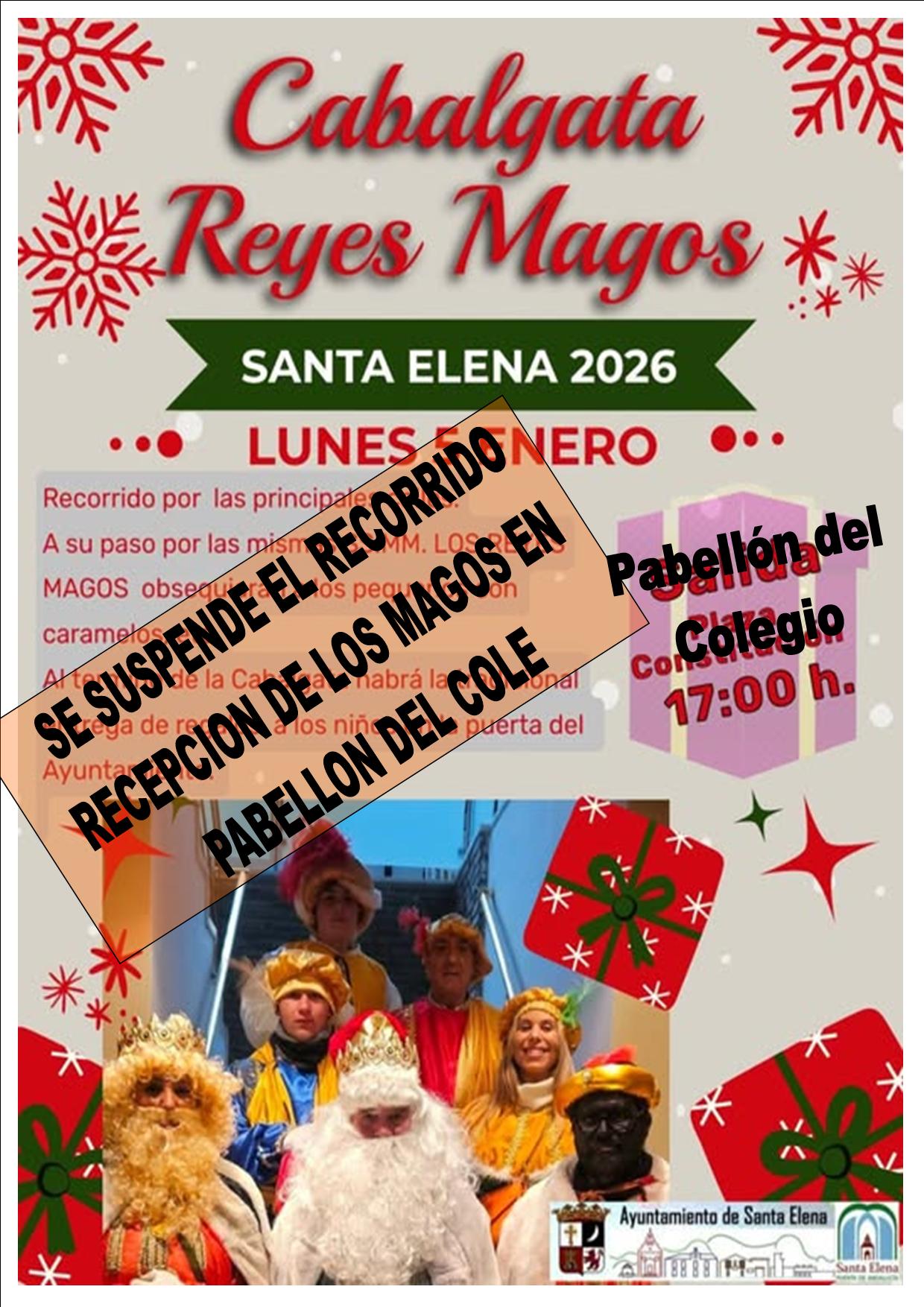 Lunes 5 de Enero 2026 PABELLON DEL COLEGIO CARLOS III a las 17 h. SS.MM. LOS REYES MAGOS obsequiarán a los pequeños con caramelos, etc.