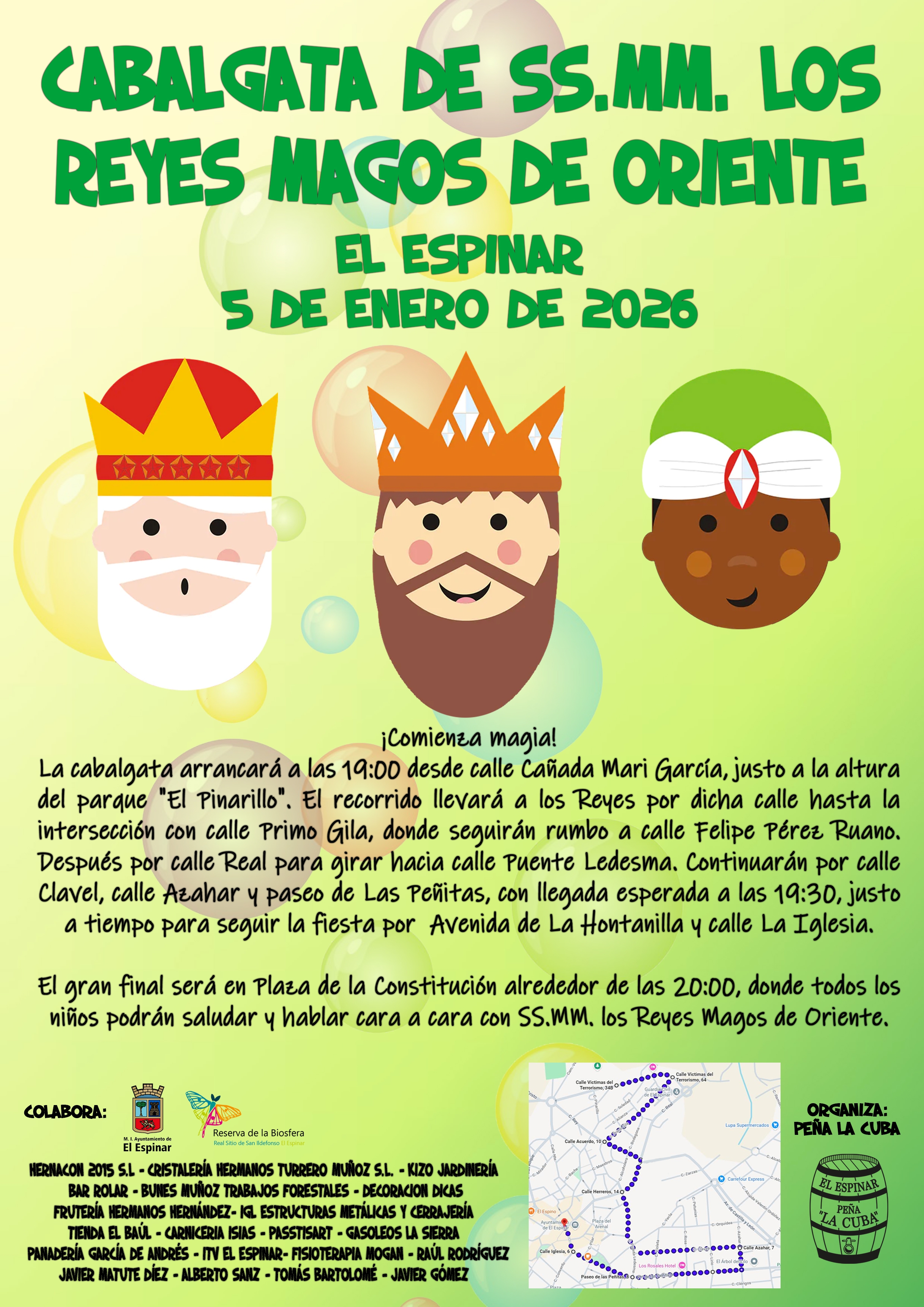 Este domingo 5 de enero, Sus Majestades los Reyes Magos de Oriente recorrerán El Espinar para hacer disfrutar a pequeños y mayores en una cabalgata llena de ilusión, música y sorpresas.