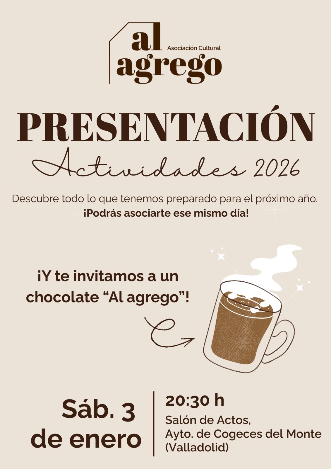 Una asociación para todas las edades, ven a informarte y asociarte mientras disfrutas de un chocolate caliente ☕️