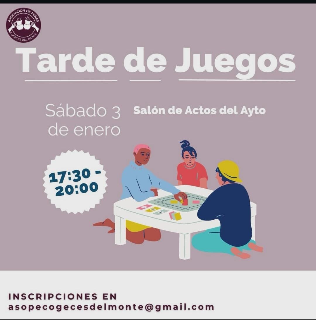Desde las 17:30h, Tarde de Juegos en el Salón de Actos del Ayuntamiento, organizado por la Asociación de Peñas. ¡¡¡No te lo pierdas!!!