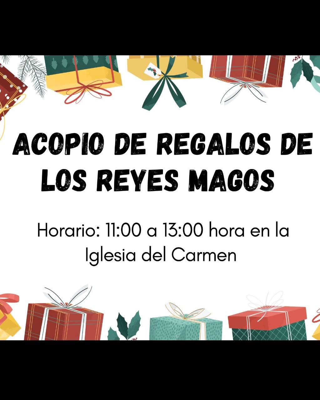 Los regalos para su posterior entrega por sus majestades, se podrán dejar en la Iglesia del Carmen hoy lunes 5, de 11:00 a 13:00h.