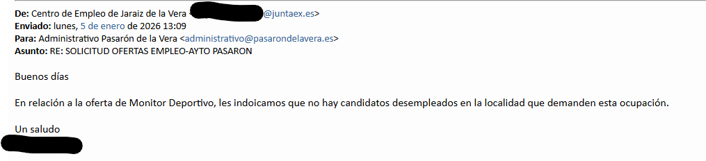 Se comunica a la población que no hay demandantes en la localidad que cumplan los requisitos para optar al puesto de monitor deportivo. Por tanto se solicitará el puesto de mantenedor de instalaciones deportivas