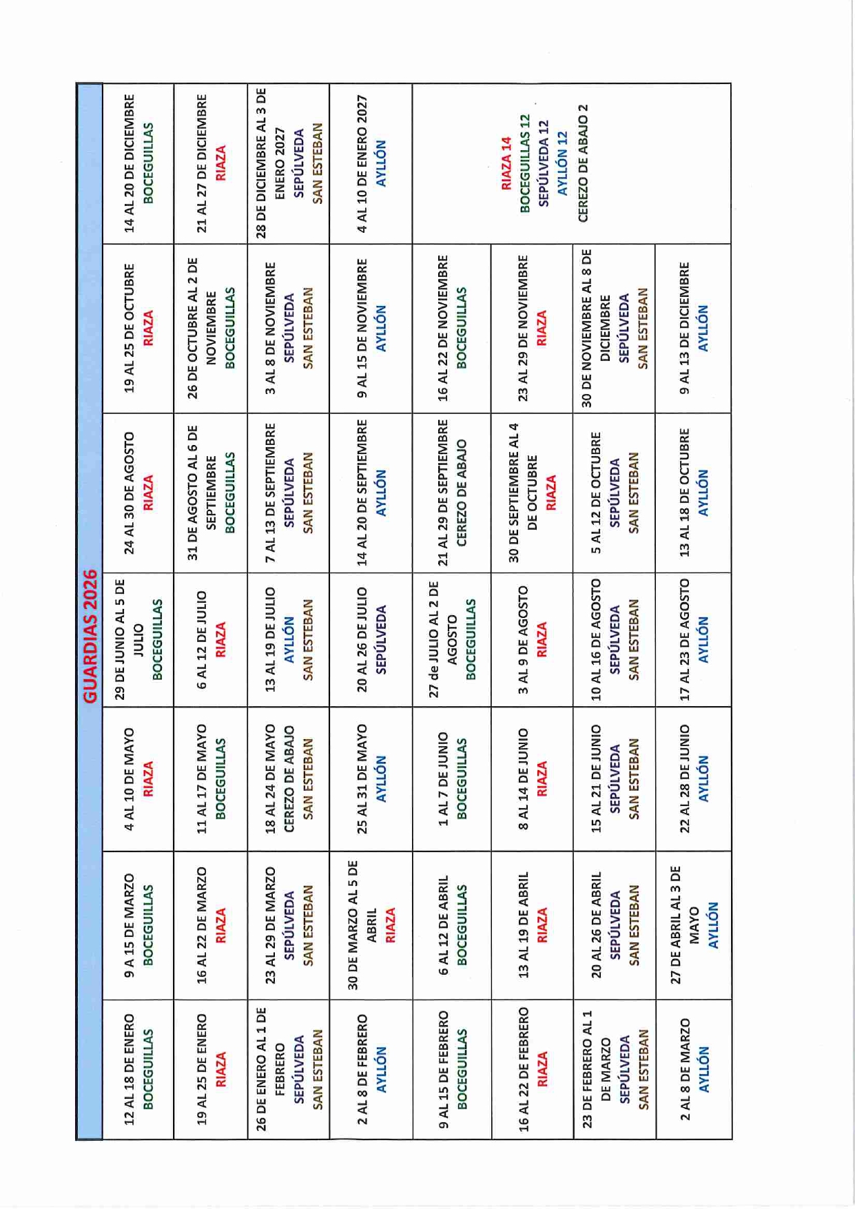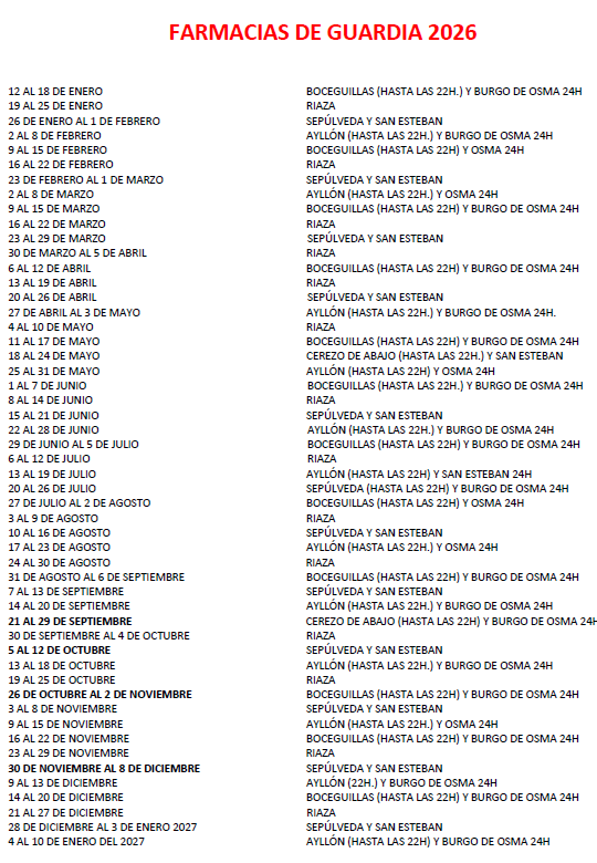 📢 Se informa a las vecinas y vecinos que el calendario de guardias de las farmacias para la anualidad 2026 está disponible en el PDF anexo.