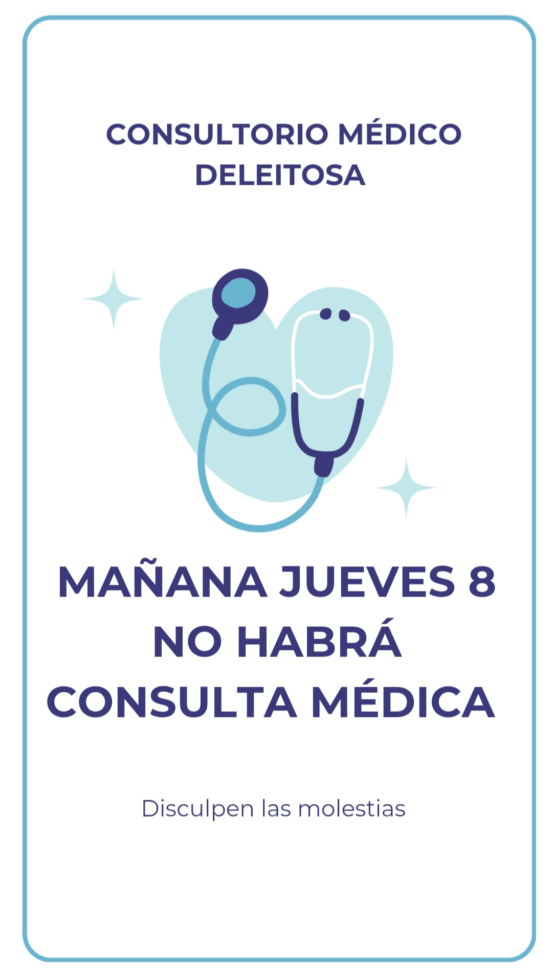 📌 MAÑANA, JUEVES 8, NO HABRÁ CONSULTA MÉDICA.