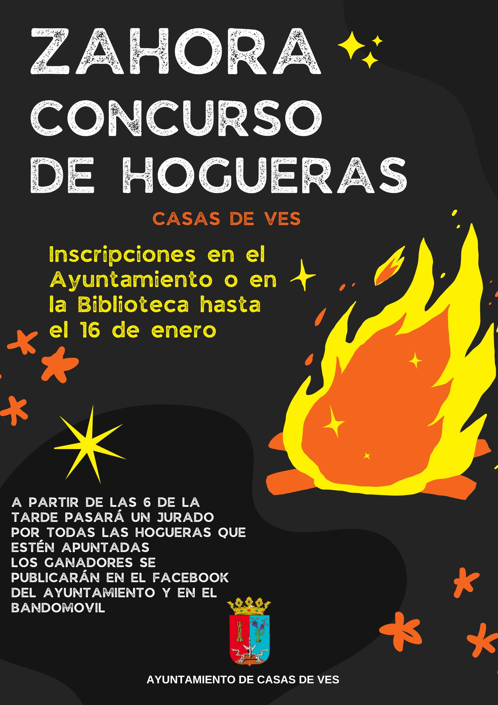 Os invitamos a participar en el concurso de hogueras de la Zahora el 16 de enero.Os podéis inscribir en el Ayuntamiento o en la Biblioteca hasta el día 16 de enero por la mañana