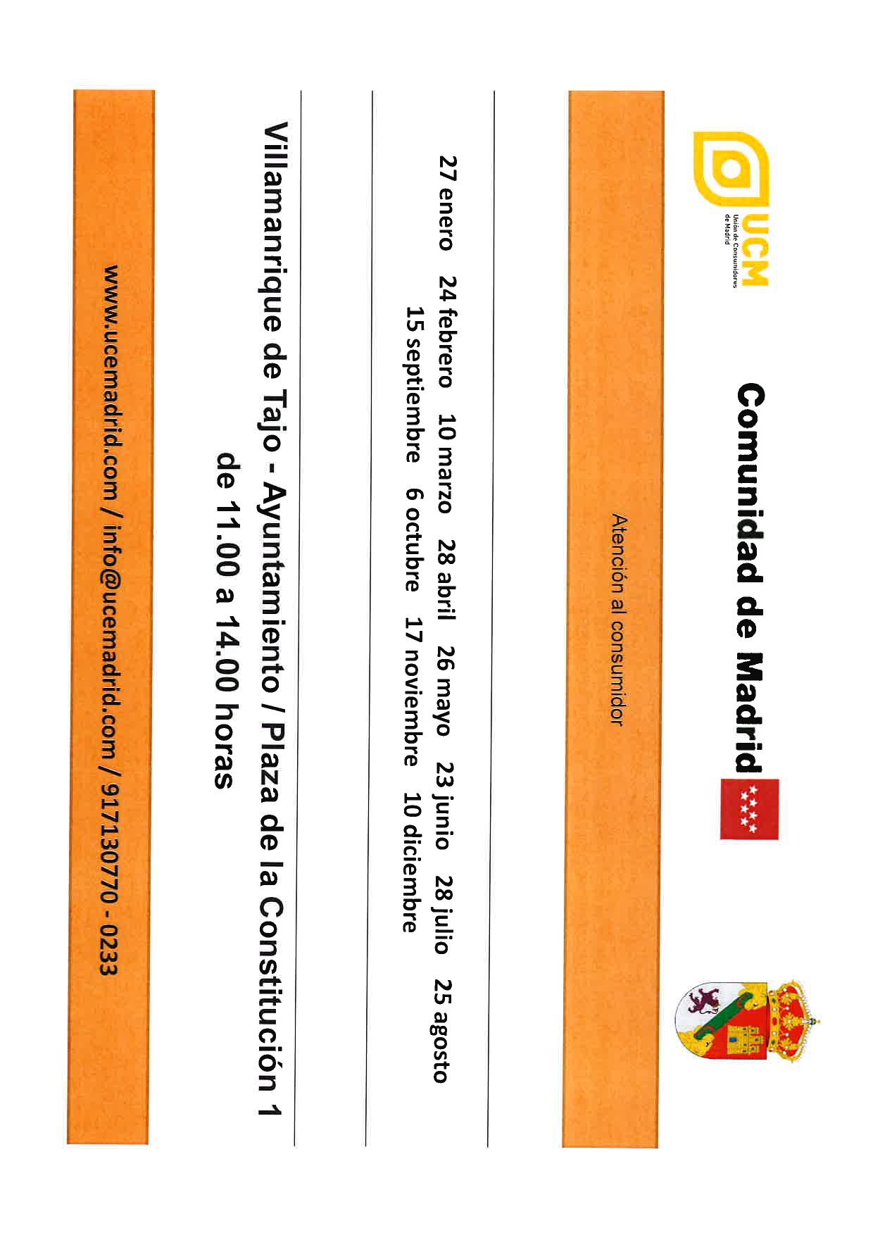 Estas son las fechas de Consumo para el Ayuntamiento de Villamanrique de Tajo.
