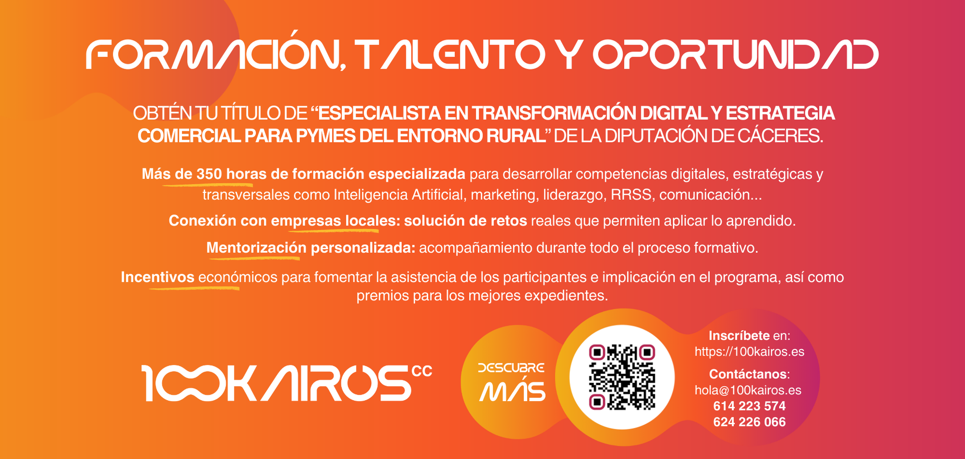 Desde la Diputación de Cáceres se continúa con la captación de personas desempleadas o en mejora de empleo, residentes en la provincia de Cáceres (excluida Cáceres ciudad), para participar en el programa 100Kairós.