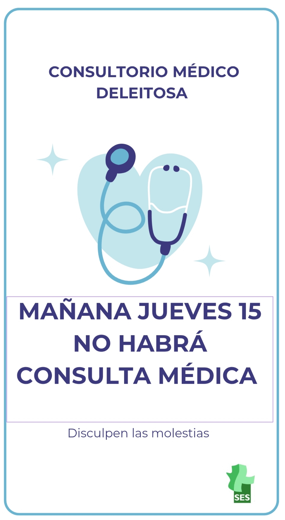 📌MAÑANA, JUEVES 15, NO HABRÁ CONSULTA MÉDICA.