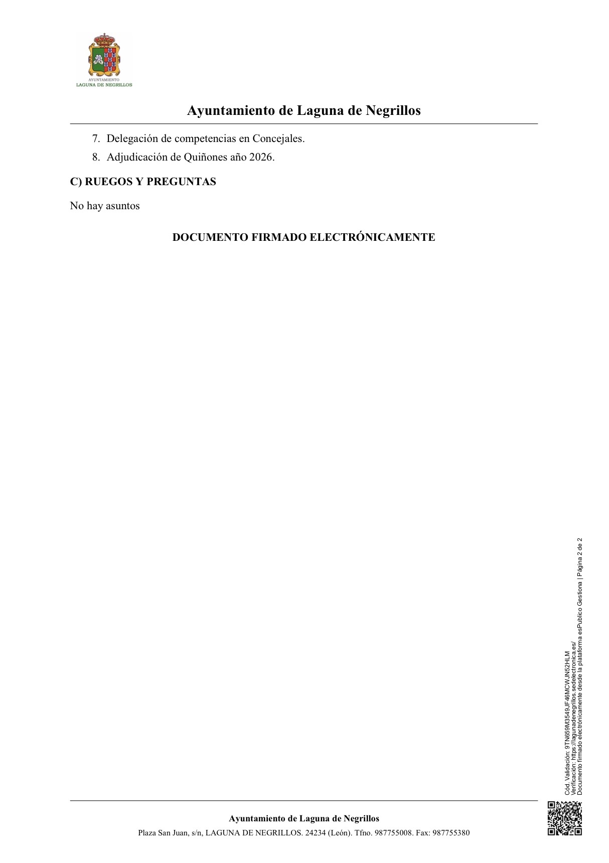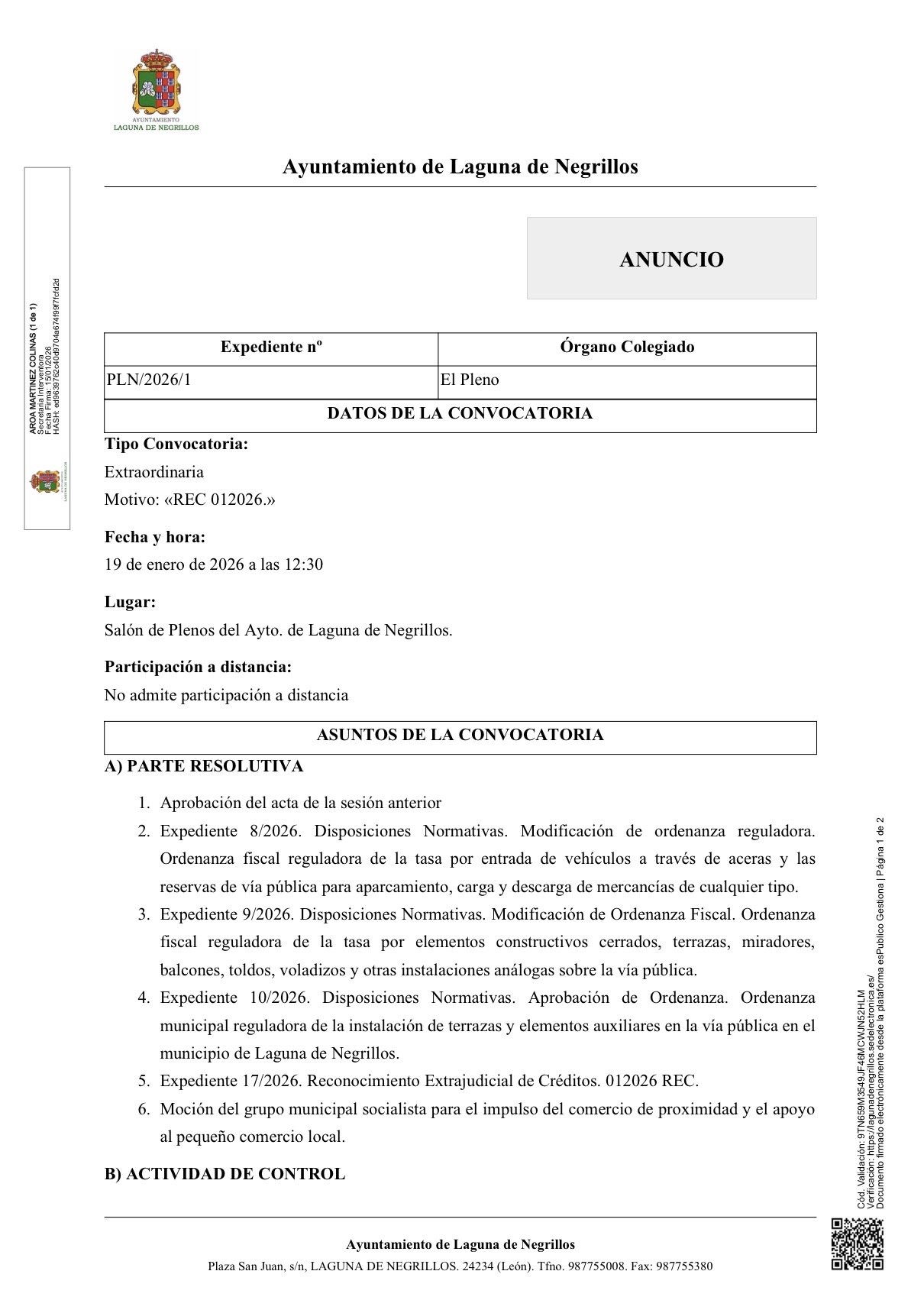 Convocatoria de Pleno Extraordinario