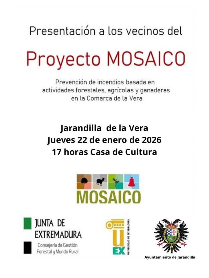 Se informa que el próximo Jueves, 22 de enero, se llevará a cabo en nuestro municipio la presentación pública del PROYECTO MOSAICO.