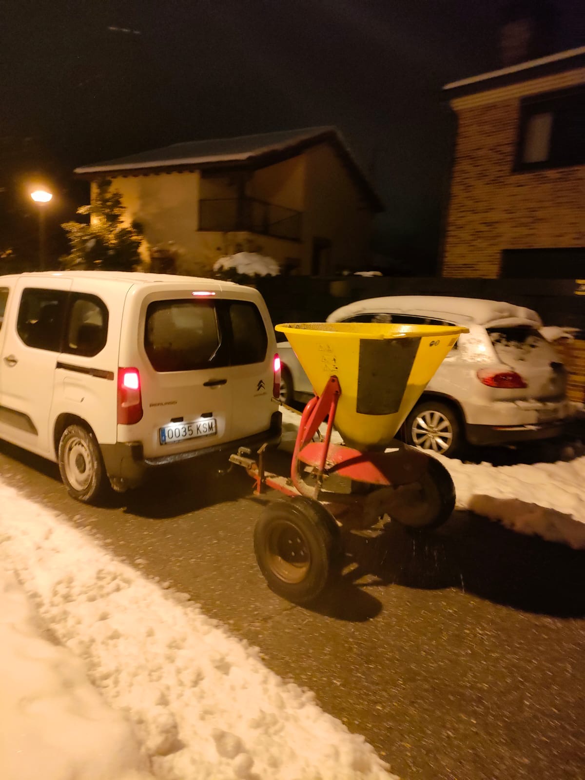 Ayer por la tarde noche se procedió a un preventivo de sal por el asfalto y esta mañana continuamos trabajando con dichas labores para garantizar la seguridad y la movilidad de vecinos y vecinas.