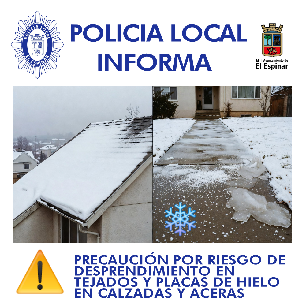 Se informa a la población que, debido a las condiciones meteorológicas extremas, se han producido caídas de nieve y tejas a la vía pública. Además, la fuerte helada de esta noche, con temperaturas que han alcanzado los -11°C en algunos puntos, ha dejado el pavimento extremadamente resbaladizo. Servicios municipales continuan trabajando.