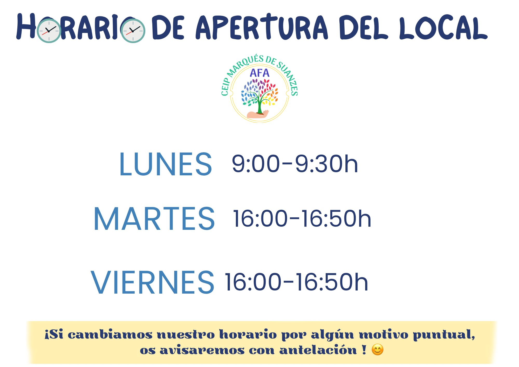 ℹ️ Si por algún motivo puntual hubiera cambios en el horario, os avisaremos con antelación 😊