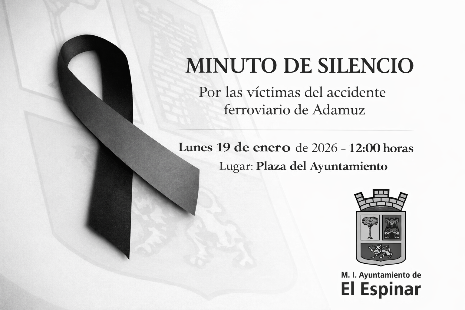 Desde el Ayuntamiento de El Espinar invitamos a todos los vecinos y vecinas, trabajadores municipales, representantes institucionales y colectivos locales a participar en este acto de recogimiento y respeto, como muestra de solidaridad con las familias afectadas y con el municipio de Adamuz.