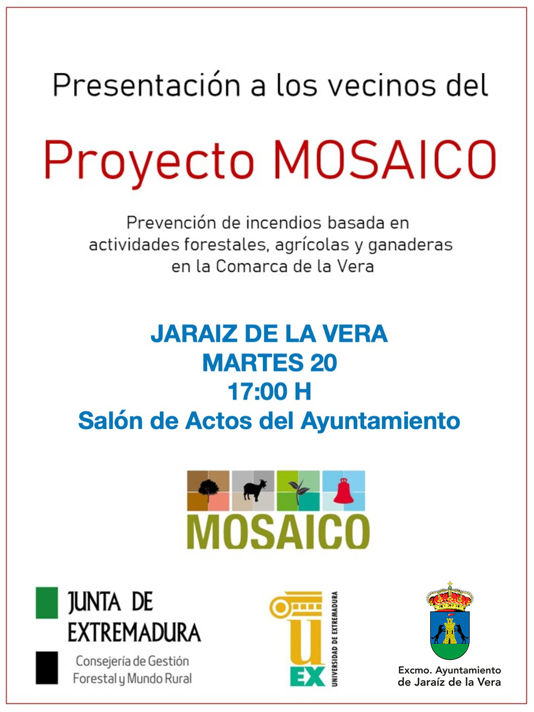 Mañana martes de 20 de enero a las 17:00 horas en el Salón de Actos del Ayuntamiento, se presentará el Proyecto MOSAICO.