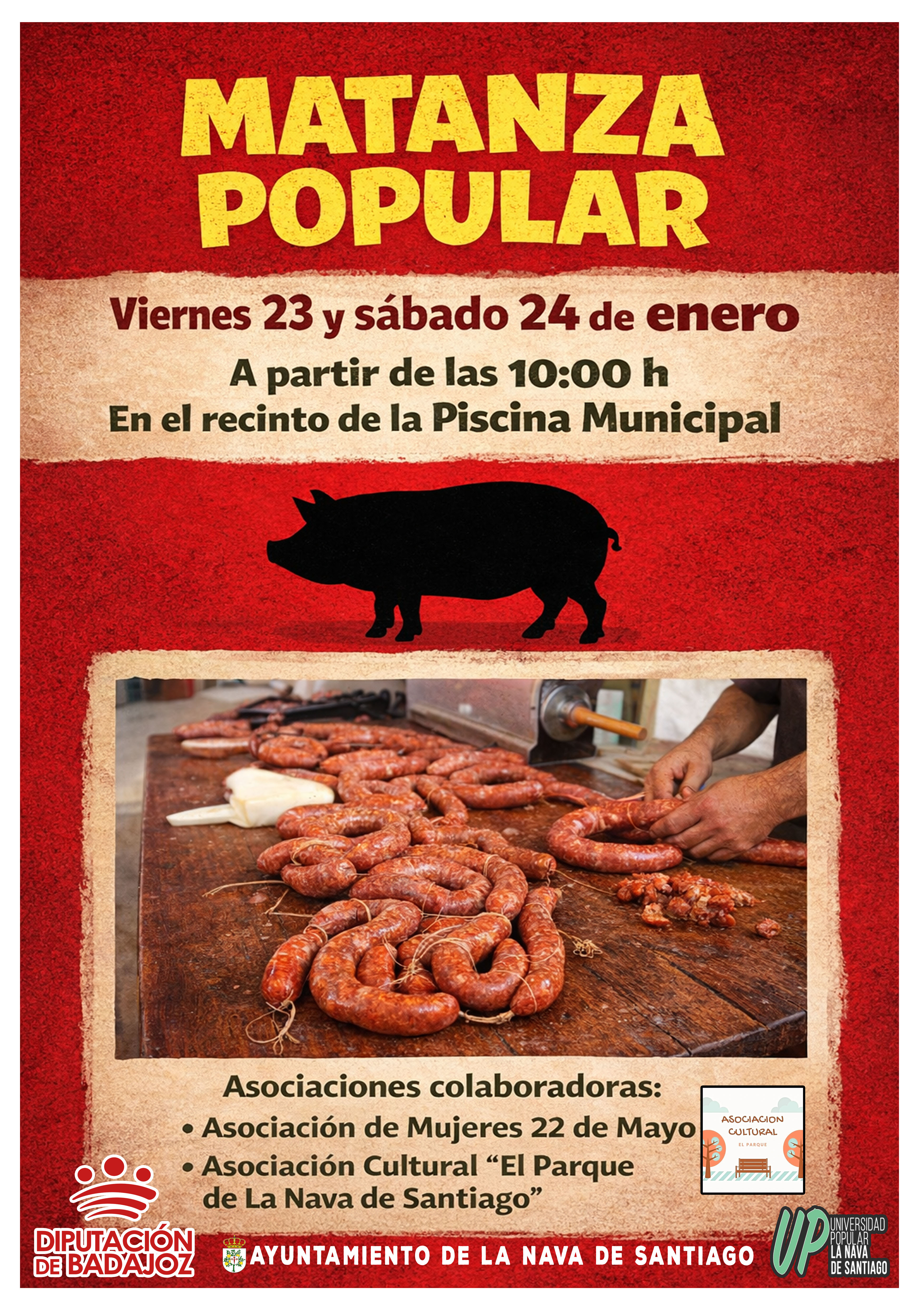 La Diputación de Badajoz a través de la Delegación del Área de desarrollo , Reto Demográfico y Turismo, ha colaborado con la entrega de un cerdo para la celebración de la Matanza Popular de este año 2026. Esta iniciativa busca promover la convivencia y el arraigo cultural , respetando las tradiciones de cada municipio, fomentando y preservando las tradiciones culturales y gastronómicas locales.