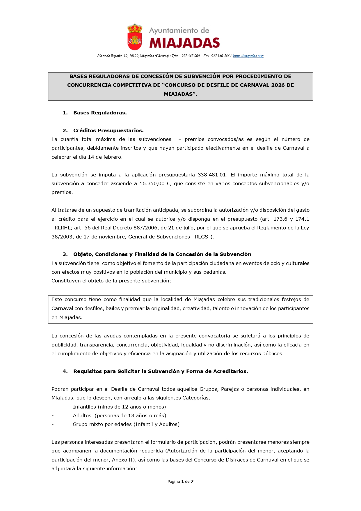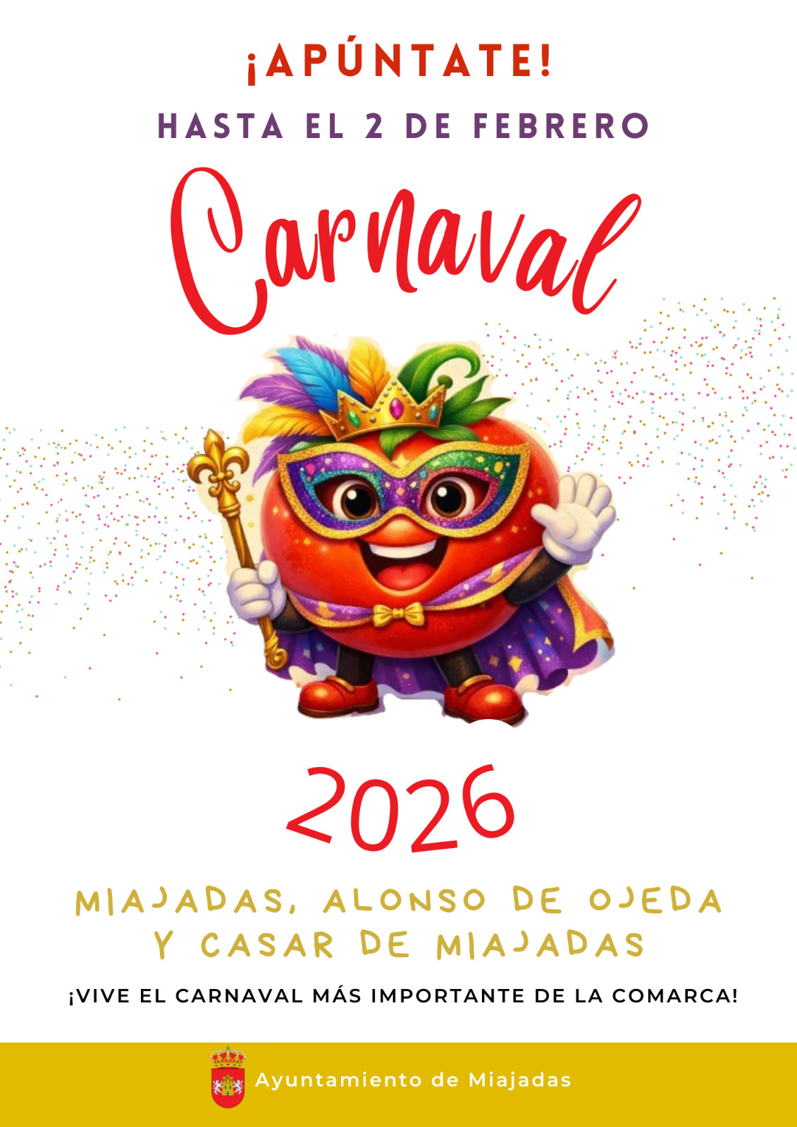Ya tenemos disponibles las Bases del Concurso de Desfile de Carnaval 2026, que recordamos tendrá lugar el próximo sábado, 14 de febrero (todo bien detallado en los diferentes archivos, arriba adjuntos).
