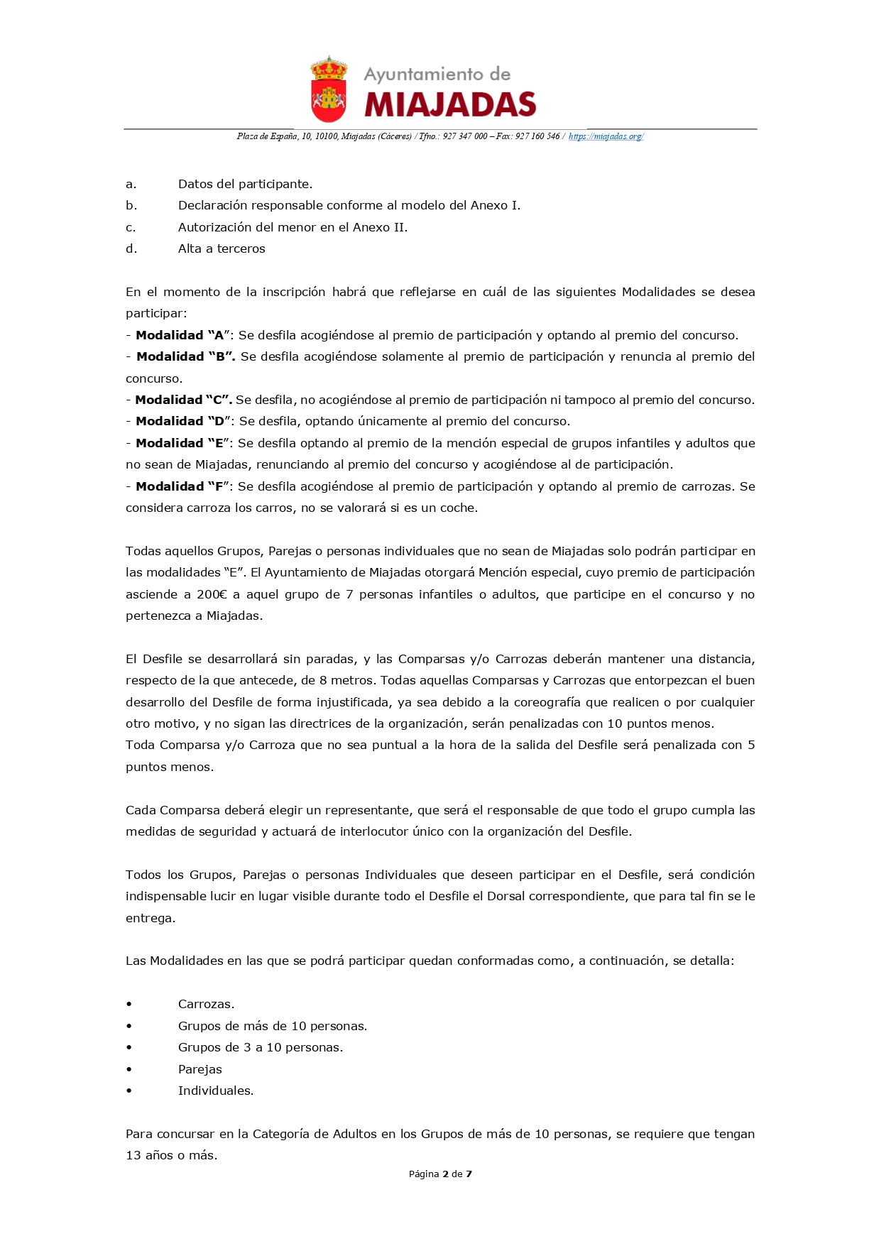 * Para cualquier duda que surja o consulta que necesites hacernos, puedes ponerte en contacto con nosotros vía telefónica, a través del Área de Cultura y Festejos, en el 927901245.