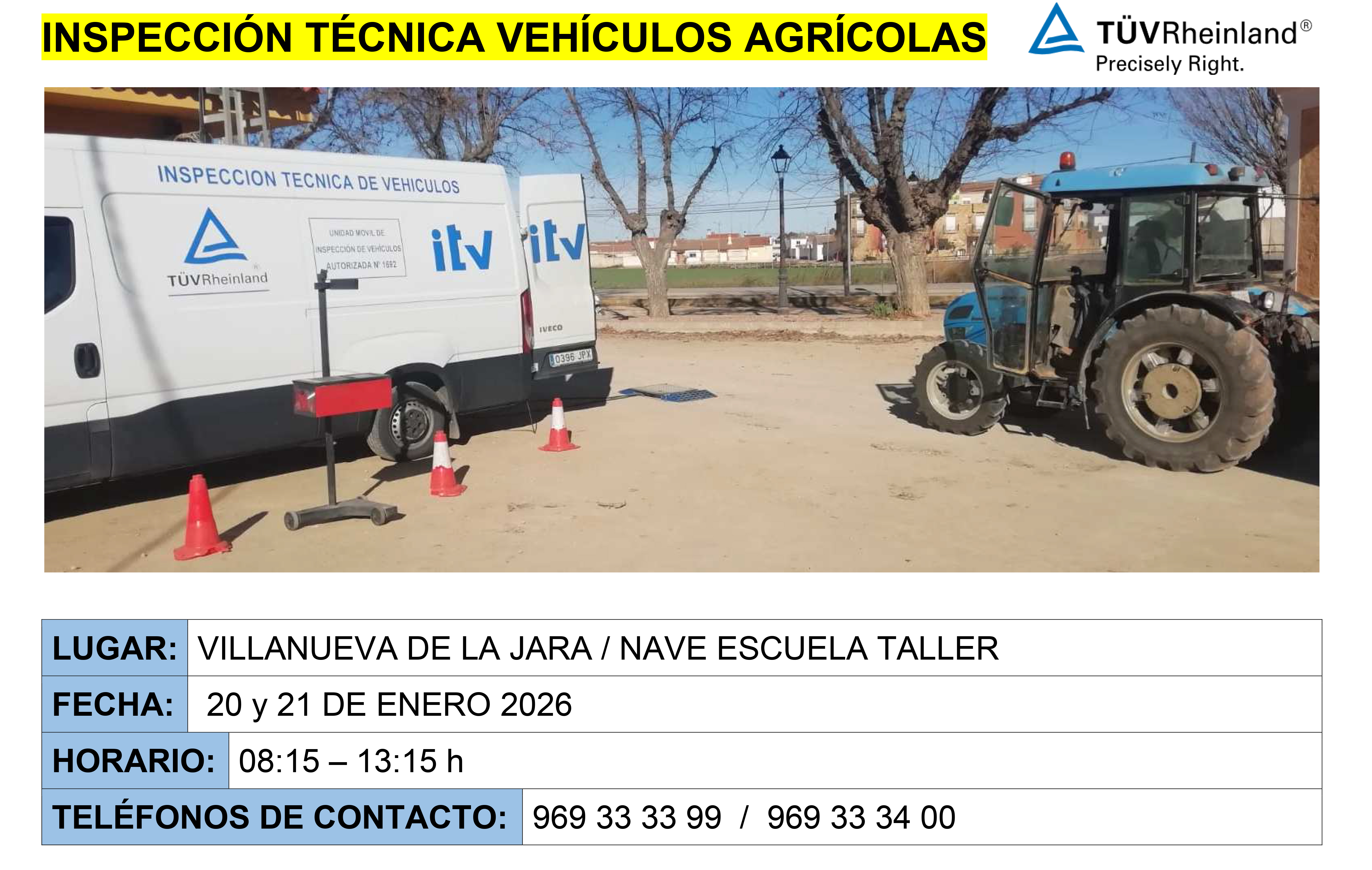 🚜⚠️ RECORDATORIO · ITV AGRÍCOLA EN VILLANUEVA DE LA JARA