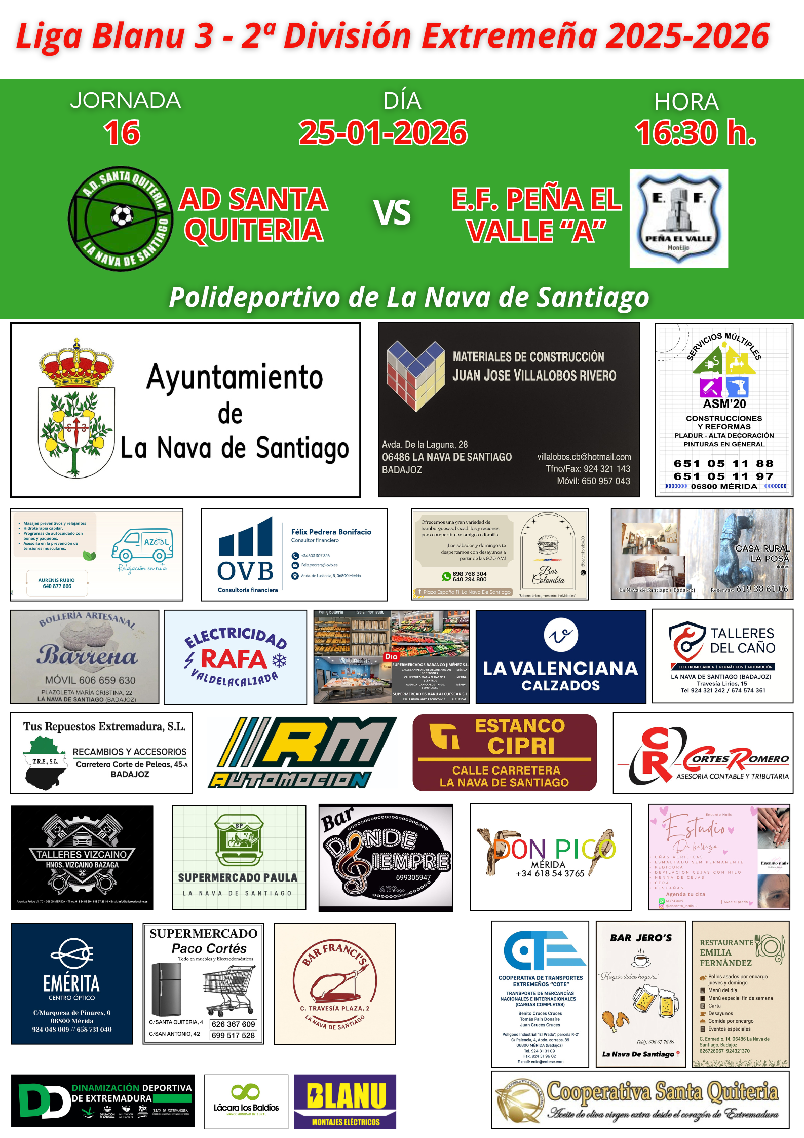 La A.D. Santa Quiteria se enfrenta a E.F. PEÑA EL VALLE "A"