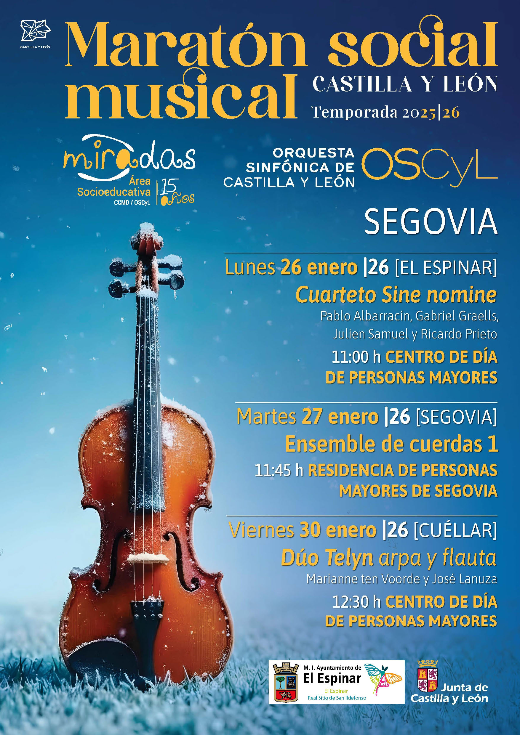 En el marco de la campaña “Maratón Social Musical” 2025/2026, organizada por la Orquesta Sinfónica de Castilla y León, tendrá lugar una actuación del cuarteto de cuerda SINE NOMINE.