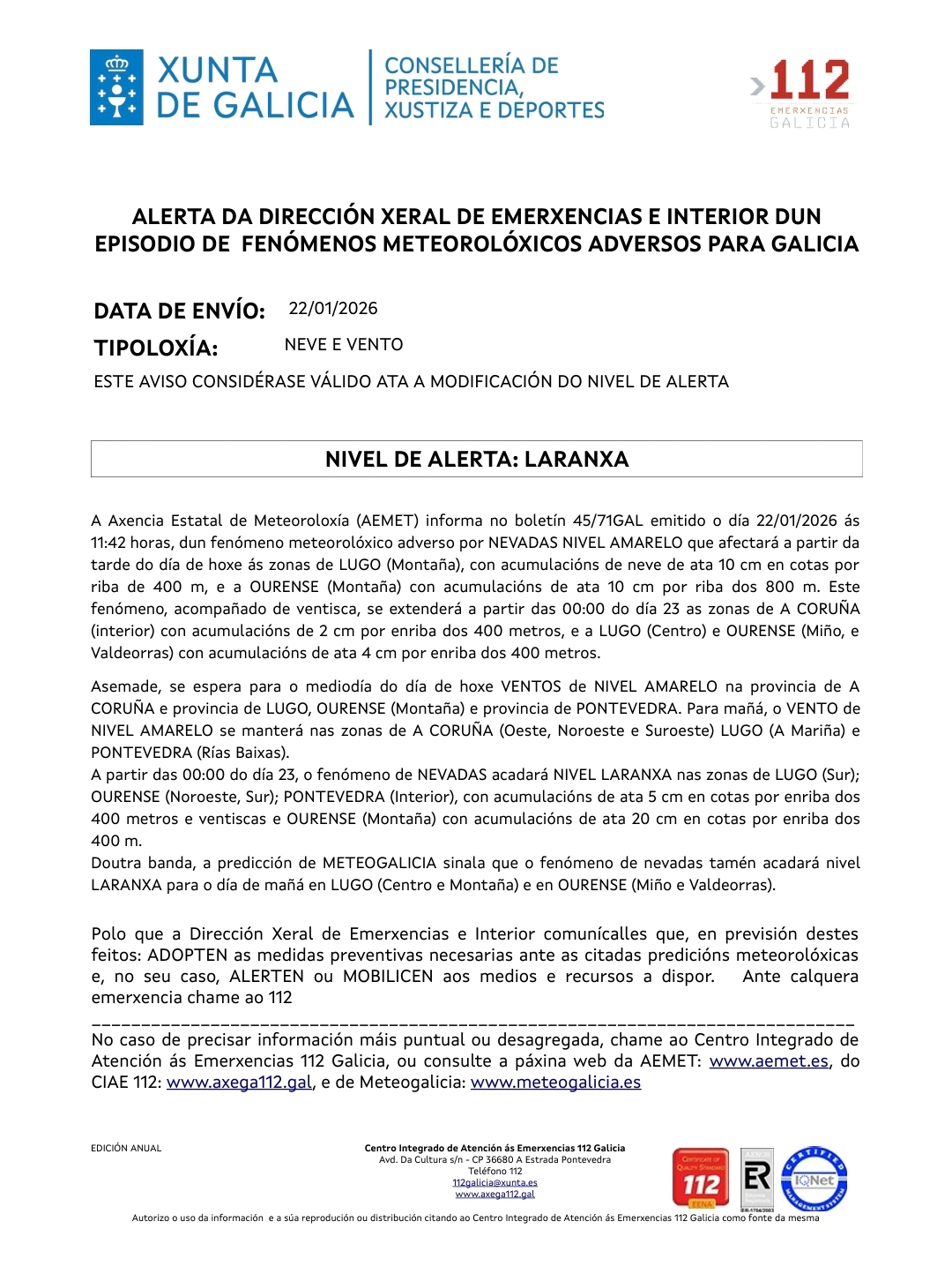 Alerta por neve